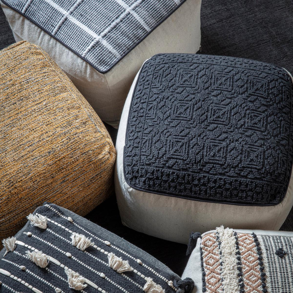 Our eye-catching textured ochre pouffe is the perfect decorative yet functional piece for your home. Perfect for extra seating around the home or simply just to put your feet up!. Features mottled shades of ochre to suit many colour schemes. This beautifully simple handcrafted artisan pouffe is generously filled with high-quality beads for added luxu. Ry.