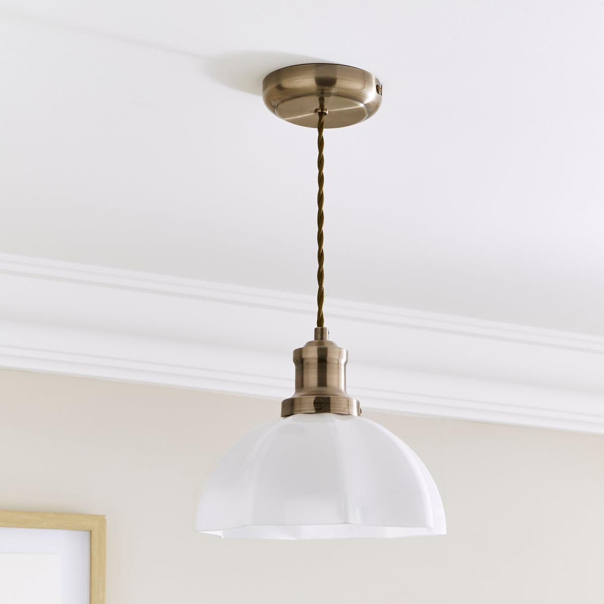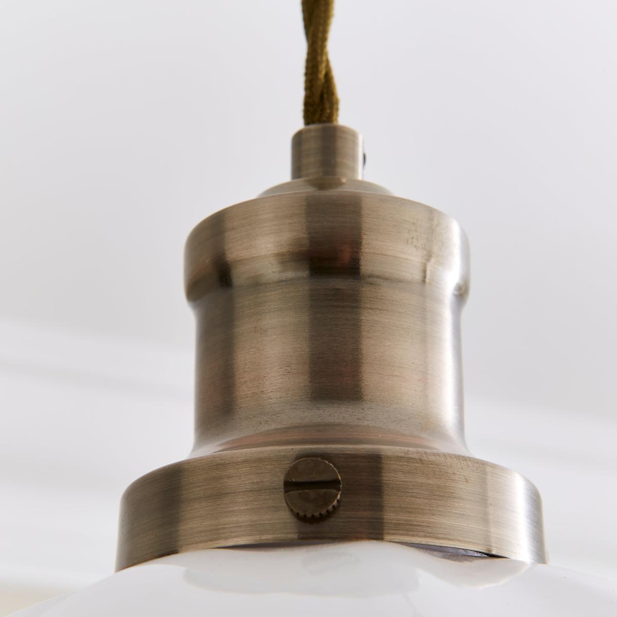 This ceiling pendant is a perfect blend of elegance and functionality. With its adjustable drop feature, you can effortlessly customize the height to suit your space and create a captivating focal point. The pendant's stunning antique brass finish exudes a timeless charm, while the gloss opal shade adds a touch of sophistication. Achieve the perfect ambiance by dimming the lights to your desired level, allowing you to set the mood for any occasion. Additionally, this pendant is designed to be energy-efficient, compatible with LED E27 lamps, ensuring long-lasting illumination without compromising on style.