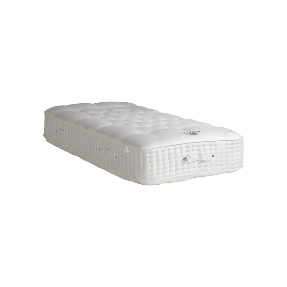 The deluxe Hartland Double Size Mattress is formed from stunning hand teased Dartmoor wool originating from the Dartmoor flocks of sheep that reside on the family farm, cotton and hand teased horsetail blended with silk, hand teased Dartmoor wool and alpaca blend, hand teased luxury cashmere along with further layers of blended cotton and wool it is the combination of the fillings working with the spring unit which gives each mattress a unique feel of extreme comfort and softness to your bed. Handmade in Devon using high quality materials featuring 3500 pocket springs (in king size), pure wool hand tied tufts and 6 rows of traditional side stitching with a chemical free cotton cover all of which produce a mattress of extreme quality providing outstanding support and comfort whilst you sleep.