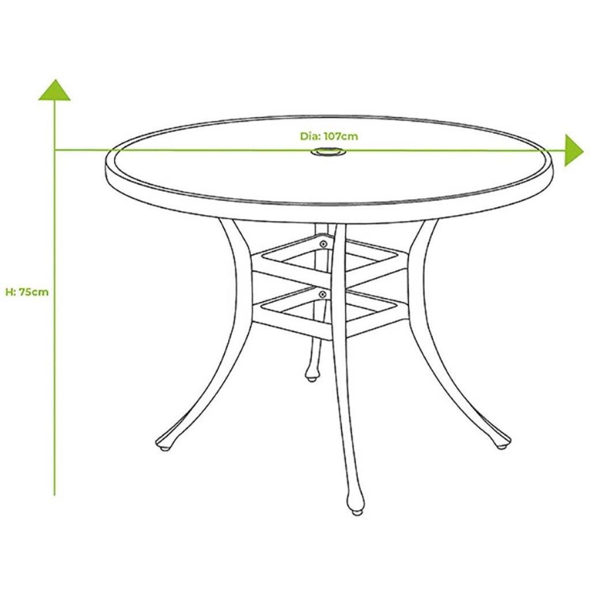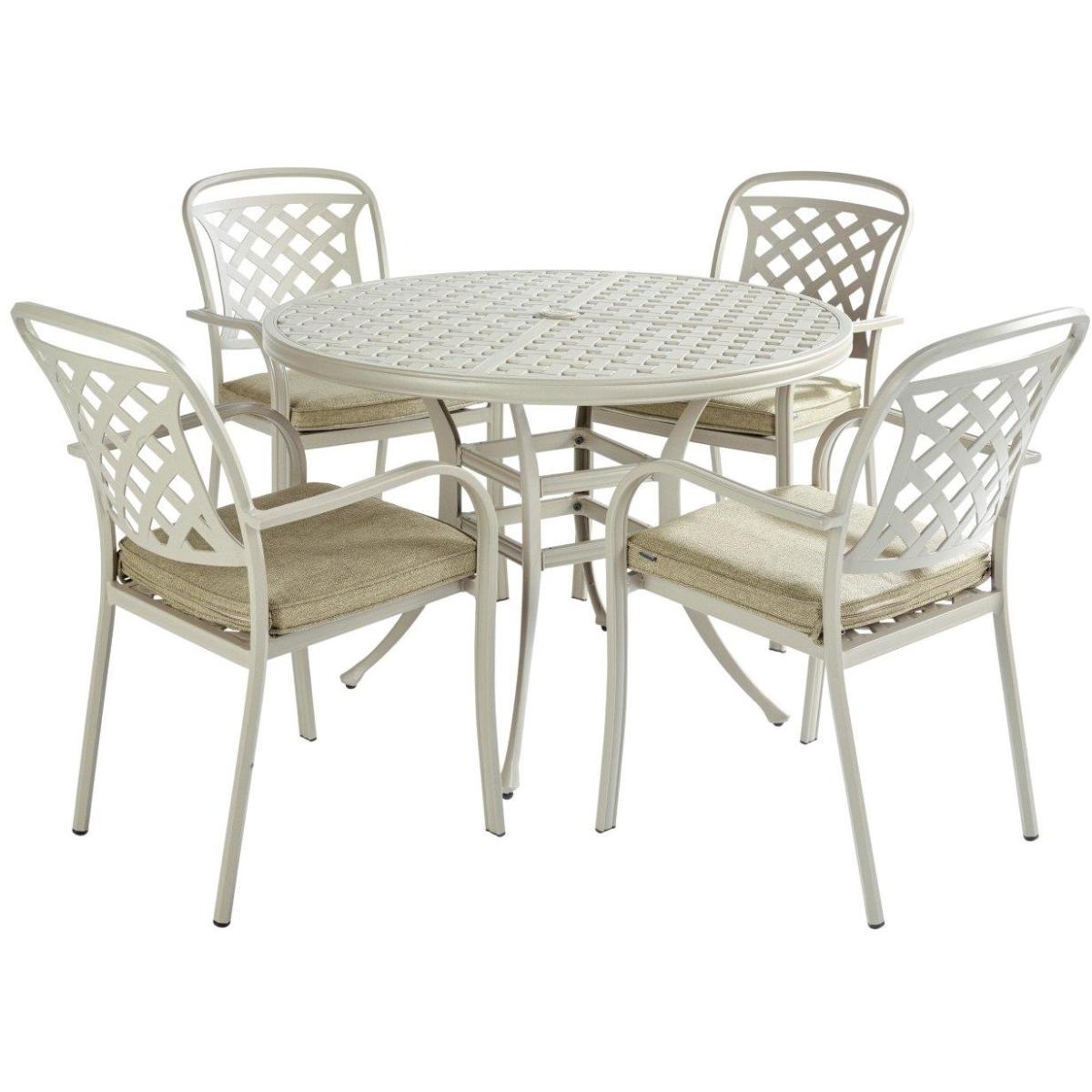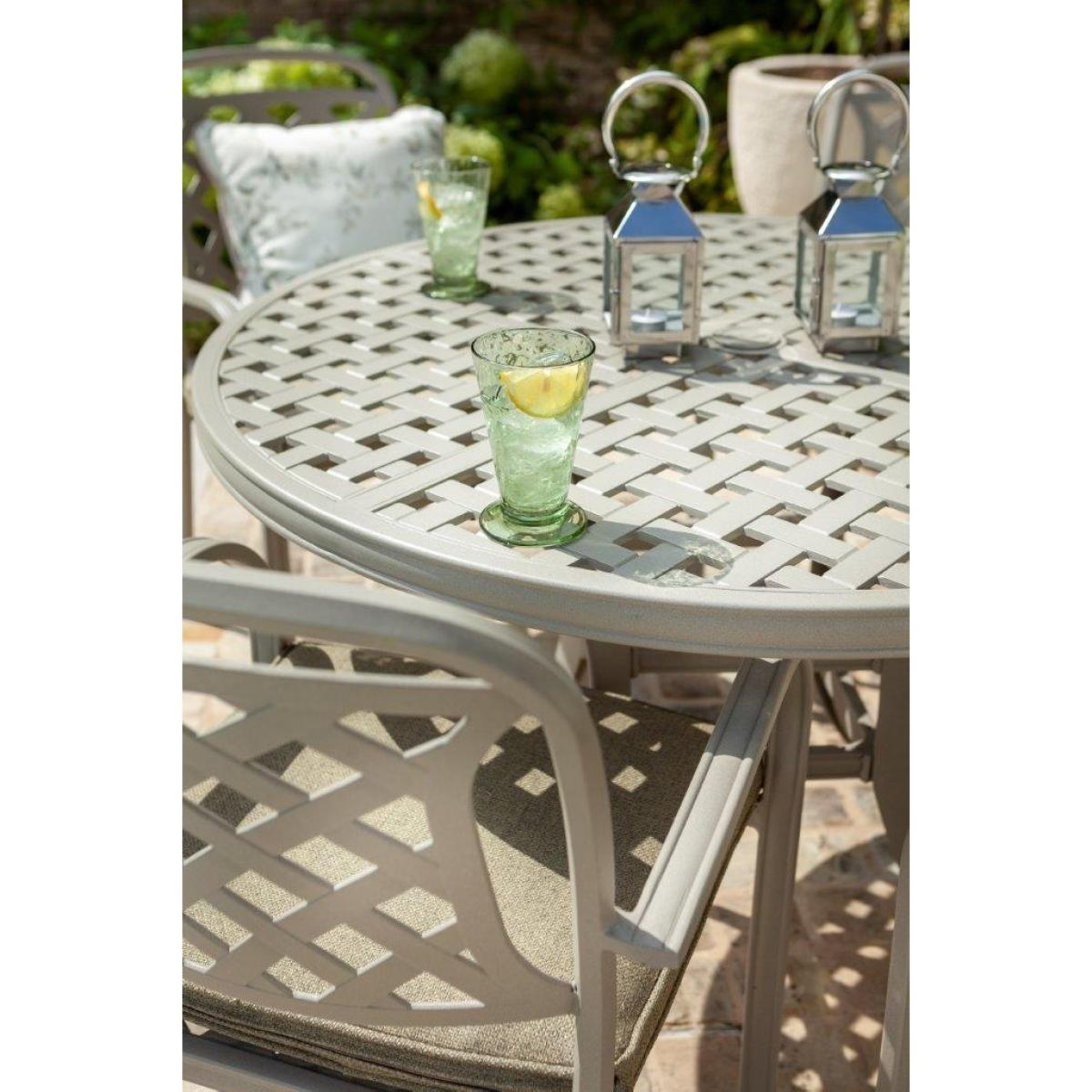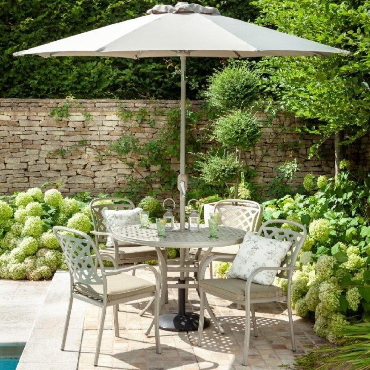 Alfresco dining couldn’t be more stylish with the smooth contemporary lattice of the Berkeley range from Hartman. Crafted from cast aluminium this furniture is durable, attractive and has great strength and value at its heart. The table and chairs can be left in the garden looking beautiful all year long, whilst the permeable Weatherready® cushions can be left outside in summer months - allowing you to make the most of the season. Set includes: 1 x Round Dining Table, 4 x Dining Chairs, 2.5m Round Traditional Parasol (UPF50+ Certified with free storage cover) and 15kg Concrete Base (not suitable on some composite decking - check with your manufacturer) KEY FEATURES: Weatherready® cushions are hardwearing & easy to clean, store away in Autumn & Winter Cushions have ties to secure into place Chairs are fully assembled and are stackable Table requires simple top and base assembly - all fittings supplied Adjustable table feet to ensure perfect positioning on uneven surfaces Crafted from coated cast aluminium; rust free, lightweight, strong, durable & low maintenance The furniture can be left outside all year round - except cushions Protect and extend the life of your furniture by using a cover - remove cushions if being covered for prolonged periods (to prevent mould and mildew build-up) Five years limited manufacturer warranty Frame Colour:Maize Cushion Colour: Wheatgrass DIMENSIONS: Table:H 75cm x Diameter 107cm Chair: H 90cm x W 54cm x D 63cm. Seat Height: 48cm, Arm Height: 64cm Base: H 35cm x W 45cm x D 45cm Please note, all screens vary in colour reproduction and whilst every effort has been made to display the colour as accurately as possible it is for guidance only.
