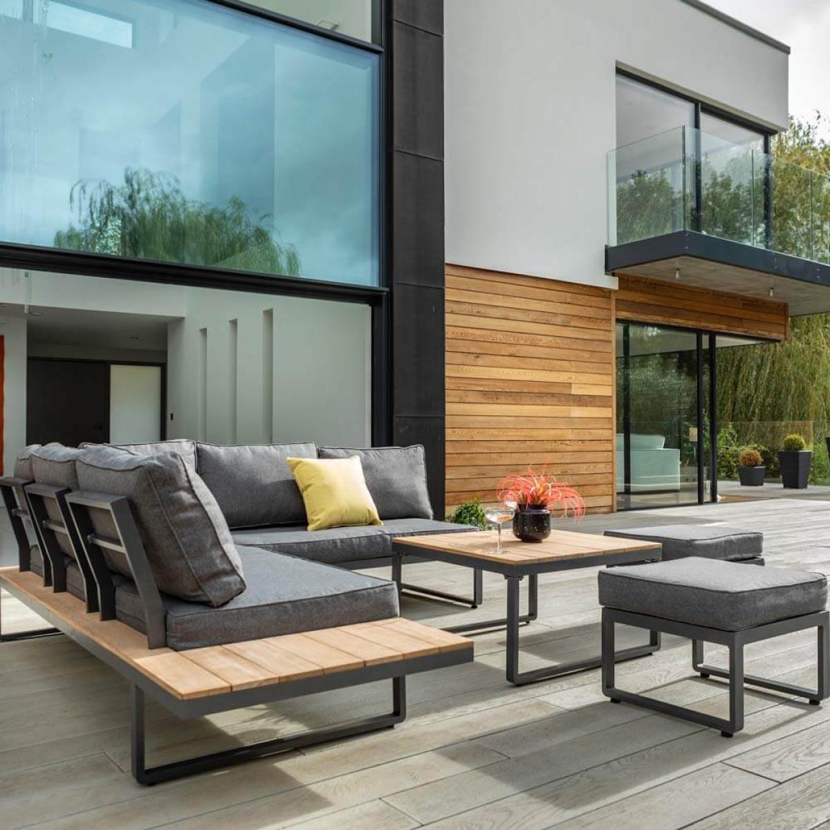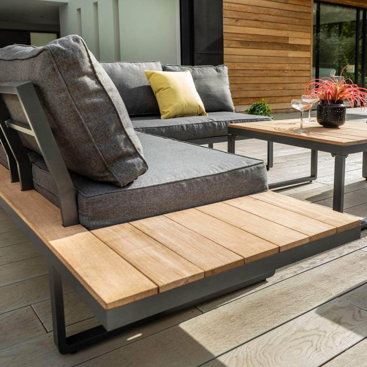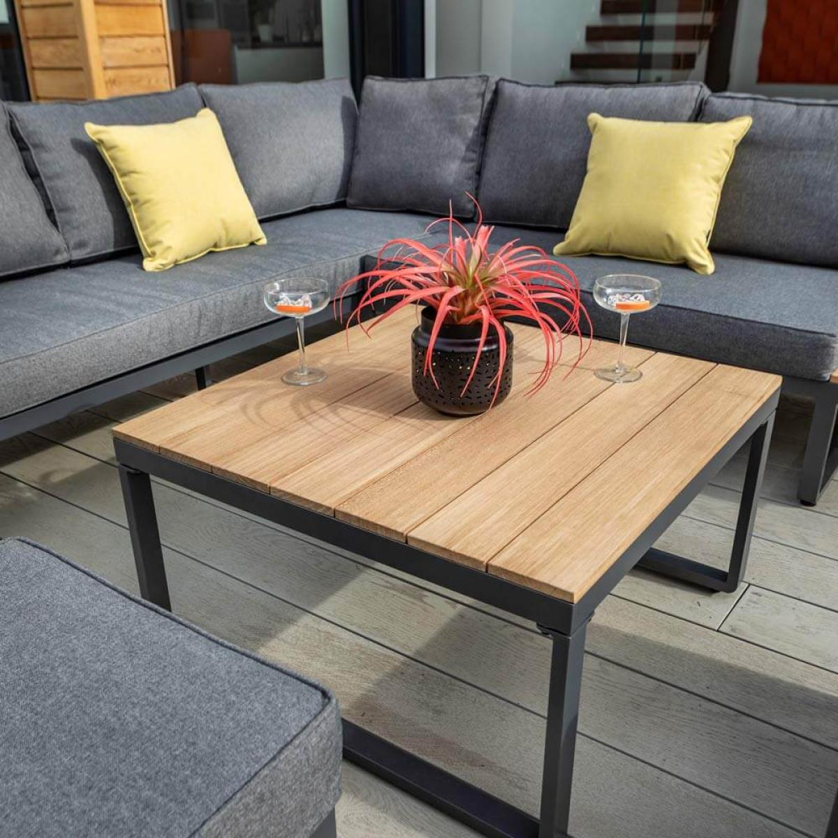 Set consists of:. About:. Splay out, casually dine, sip a cocktail, gather friends, read a book or simply sit and absorb the fine weather; all of these garden pursuits, and more, are suited to the wonderfully stylish Hartman Singapore Square Corner Platform Casual Dining Set. This finely styled Hartman outdoor garden furniture is capable of seating 6 people and is equipped for all things alfresco-casual. Find two ingenious platform side tables built onto the ends of the corner sofas, respectively. These tables are topped with the same teak hardwood that’s to be found on the small square coffee table, this material doesn’t just look fantastic but is also incredibly hard wearing and easy to clean. The entire Hartman outdoor furniture set is finished in a powder coated aluminium and therefore benefits from an integral repellency to the elements, this. The comfortable corner unit sofa is supremely comfortable for hours of outdoor relaxing and dining enjoyment with family or friends. This Hartman furniture comes equipped with cushion sets covered in their Weatherready® material, a system that’s inbuilt to withstand light rain showers and flash downpours. Any heavier or more consistent wet weather will simply pass through the purposely permeable layers and air-drying over time with airy lighter and brighter conditions. We just advise these are stored indoors during the winter or for consistently poor weather windows. The two accompanying stools are also topped with these thick fill slate cushions, meaning all seated will be happy for hours of garden enjoyment. Key Features:. Although aluminium furniture is by nature resistant and ready for the outdoors to best shield your furniture from tree debris, bird droppings or simply to keep it tidied away we recommend the use of a protective cover, below is a link to the specific fitting Hartman protective cover to be purchased separately:.