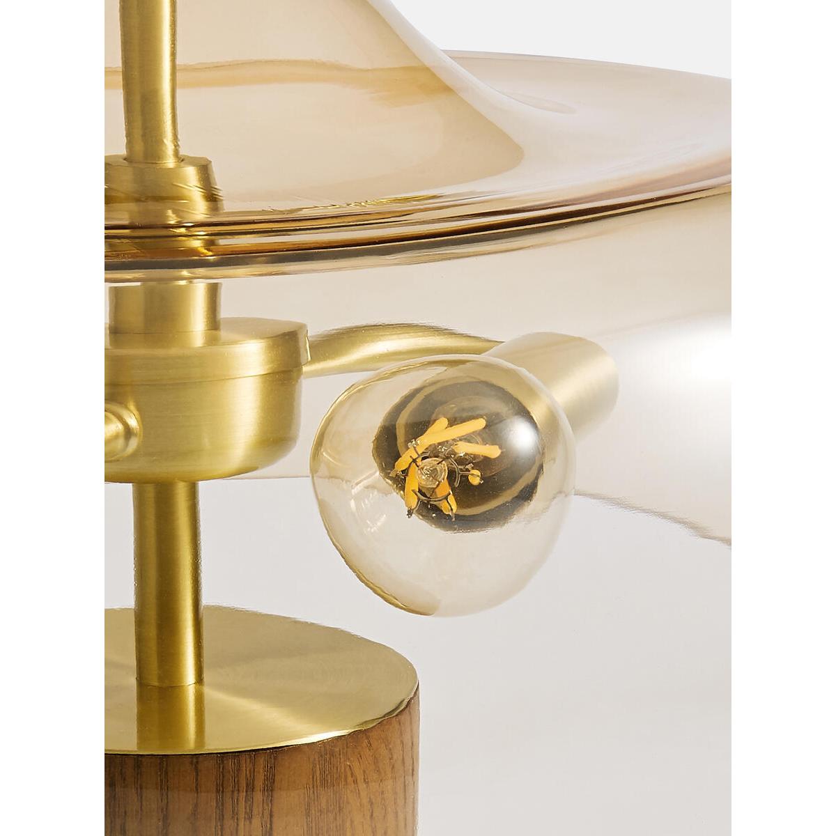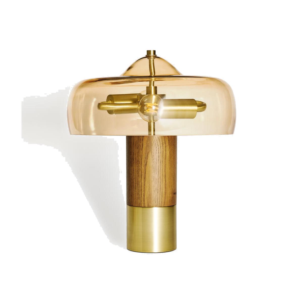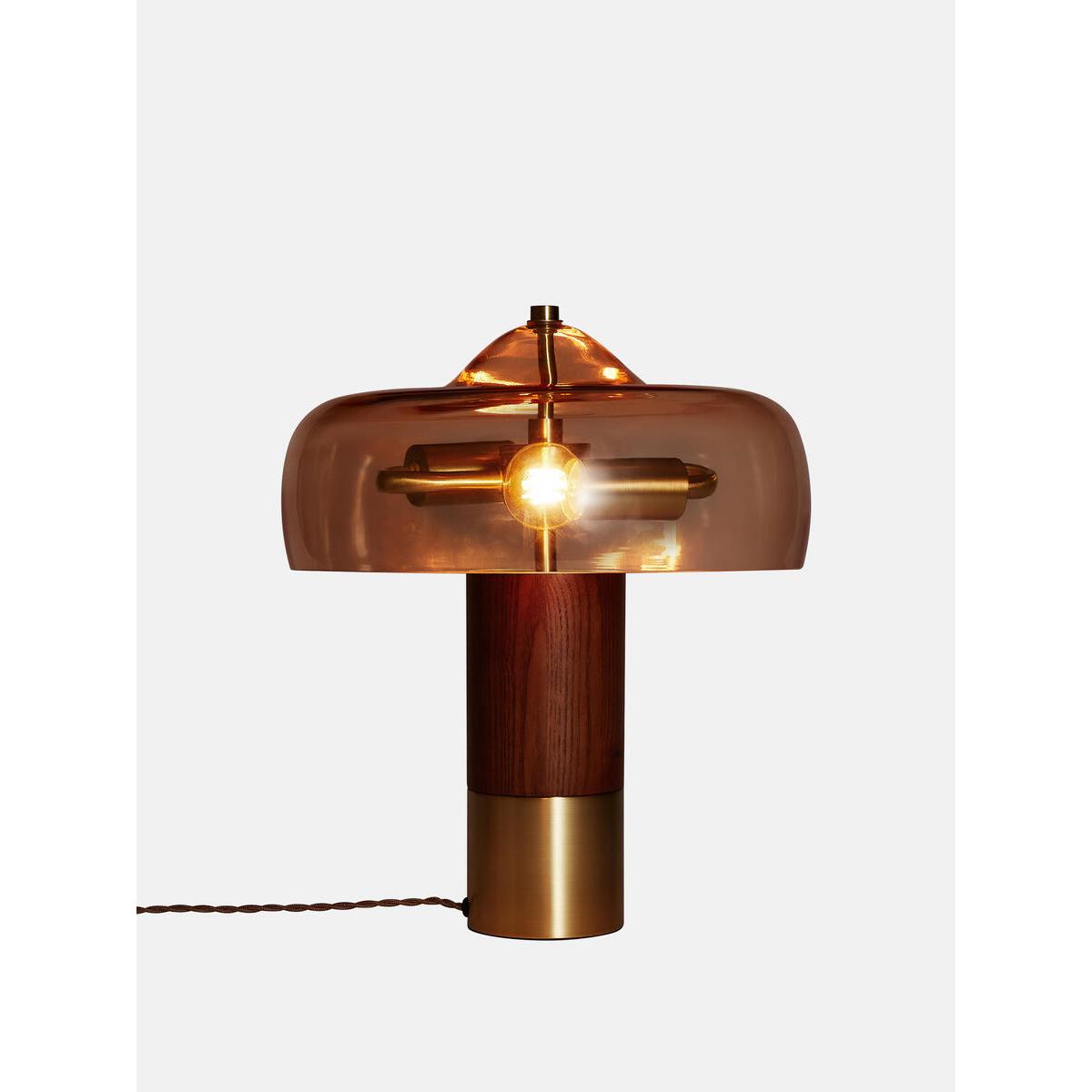 'We found an amber coloured glass for the domed lights on the front of The Allis bar - a tribute to the atomic dots on the side of Studio 1 - and decided to continue using it in the lamps to bring a glow to the main member's club bar. The amber glass has a real warmth to it and the lamp has a '60s space age look with its brass and timber base.' Daisy Bere, Soho House Design • '60s style table lamp with blown amber glass shade • Walnut wood base with brass collar • 2 x E14 globe bulbs, 40W max • Inspired by the lamps on the club floor at White City House