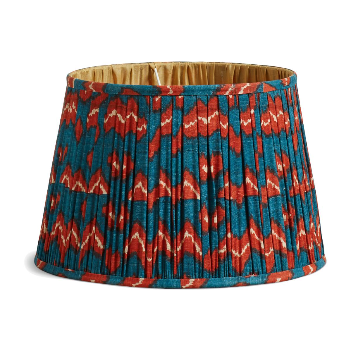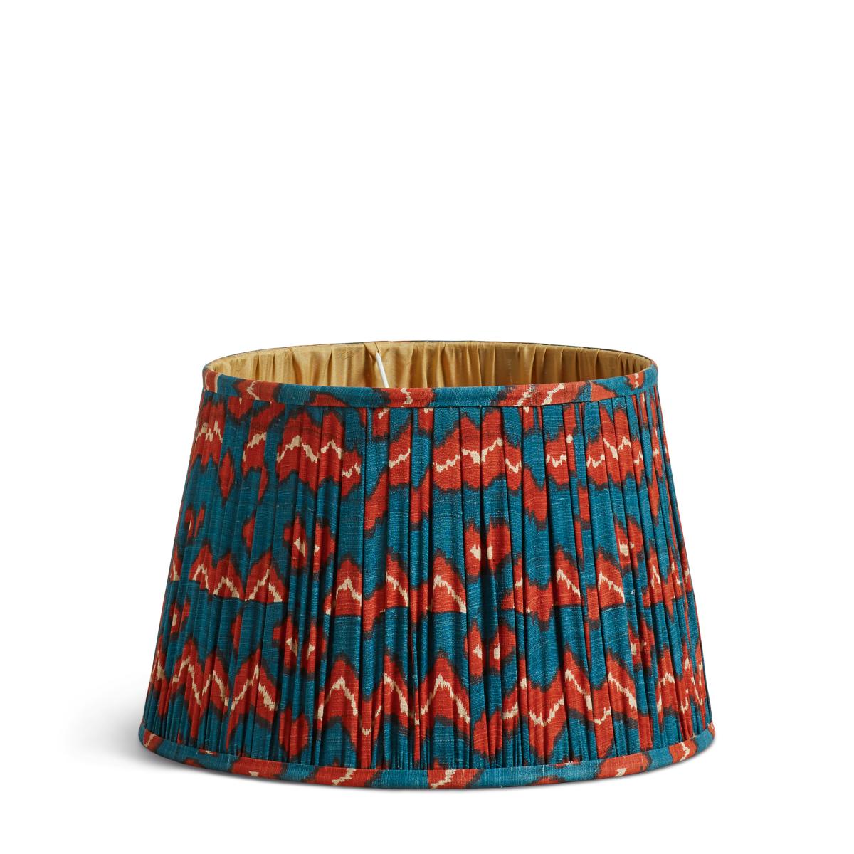 Add a touch of colour with one of our boldest patterns. The Haruku print features on our cushion covers and has now been reimagined as a pleated lampshade. The deep blues and orange/red tones are warming when lit from beneath the lined shade and will create a cosy ambience in your rooms.