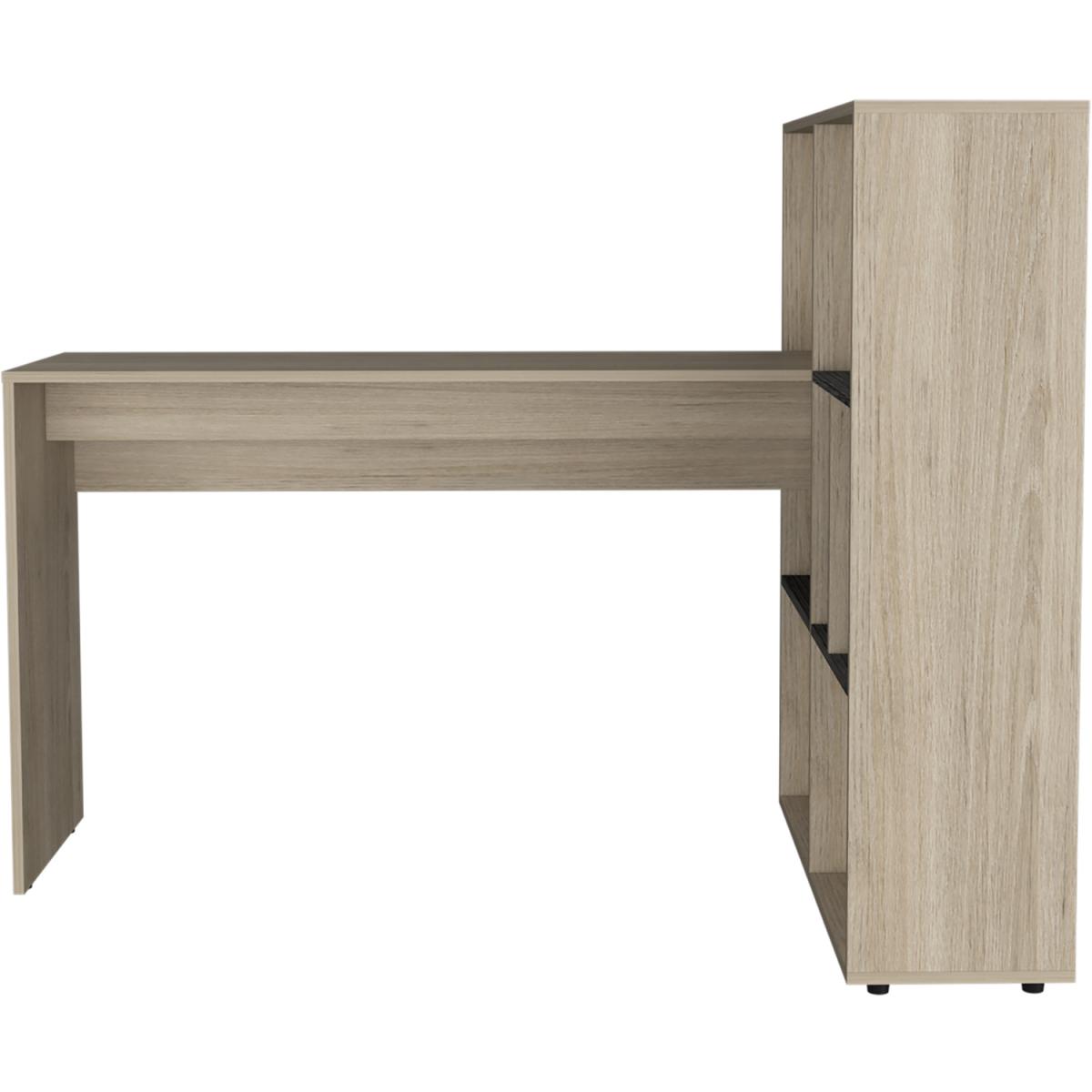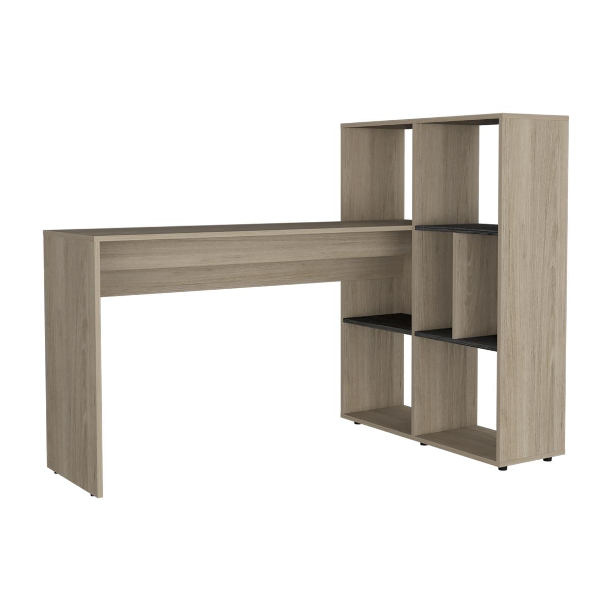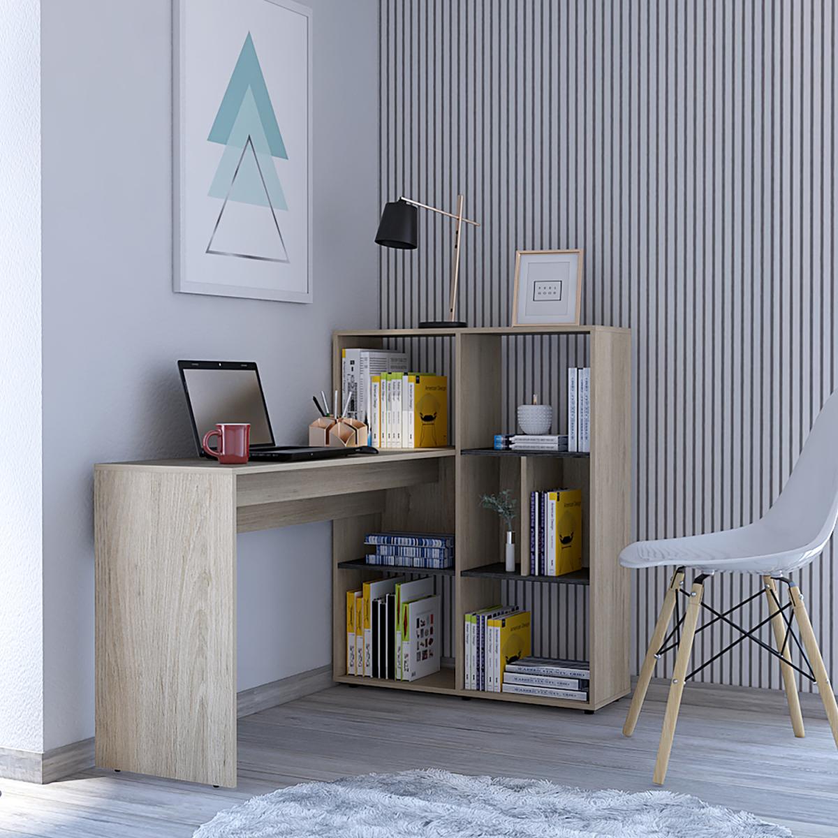 This Harvard desk with an integrated bookcase is a great way to use a corner in your home to create your own study area. The unit combines ample working surface along with plenty of shelving space for all your books and files to be close at hand. Made in an easy to clean, hardwearing washed oak and carbon grey grained effect melamine finish. Delivered flat packed for easy home assembly.