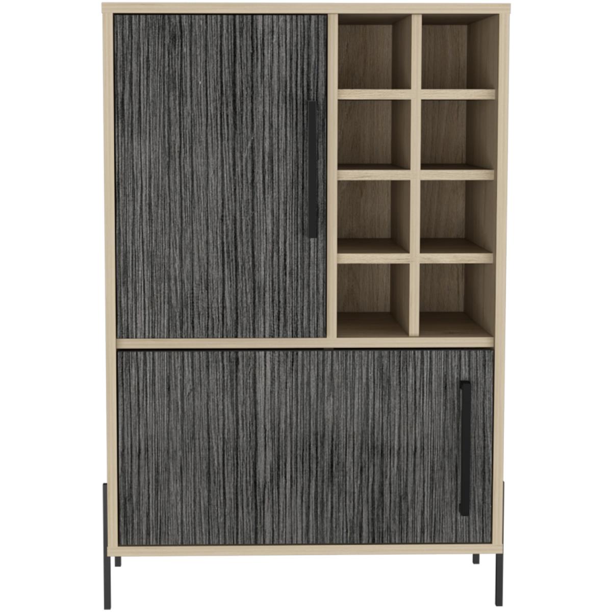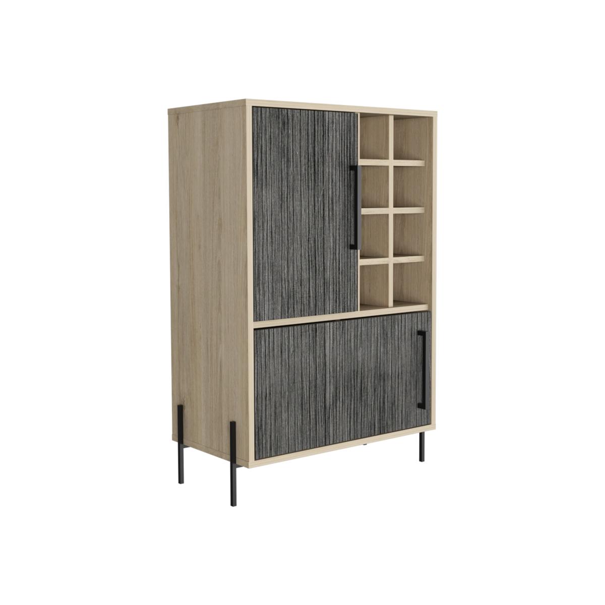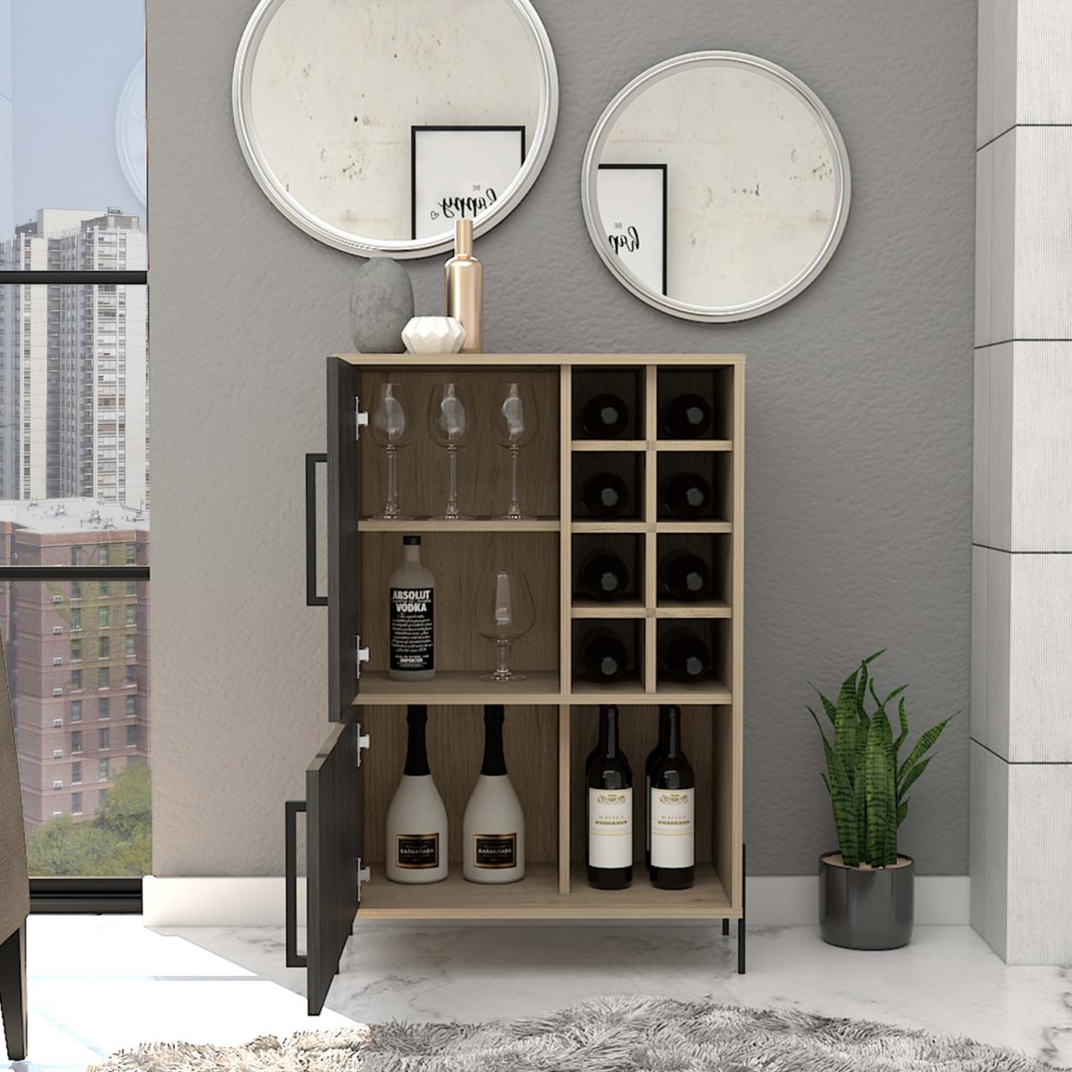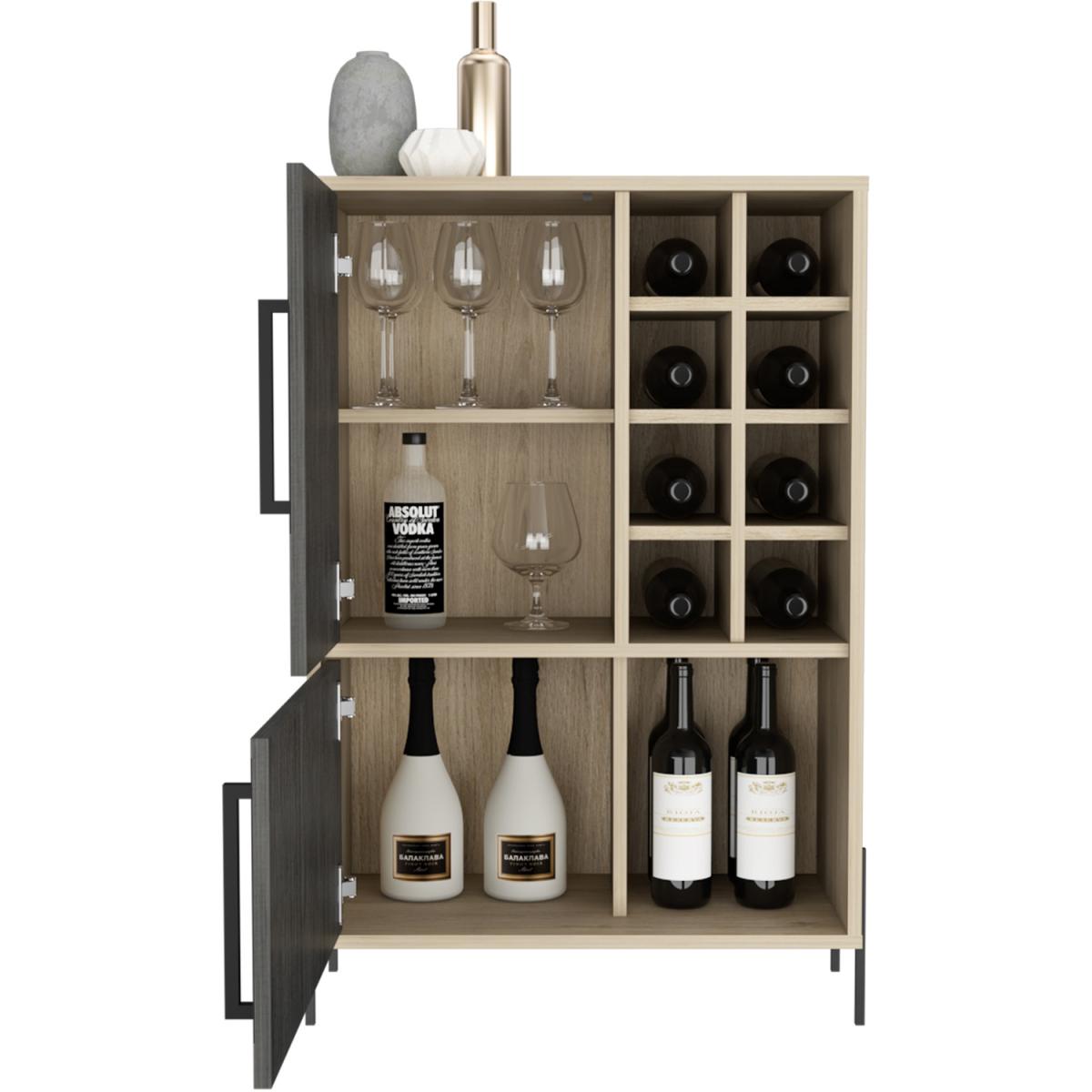 Harvard offers a distinct collection of pieces ideal for casual living. Made from hard wearing, easy to clean, woodgrain textured finished boards in washed oak and contrasting grey grain effect and accentuated with black metal bar legs and handles. This drinks bar offers you an ideal place to store your glasses and bottles and have everything organised. Open bottle storage sits alongside a storage cupboard with internal shelf, ideal for glassware. Underneath a wide opening door conceals a split cupboard which provides plenty of space for more drinks or accessories storage.