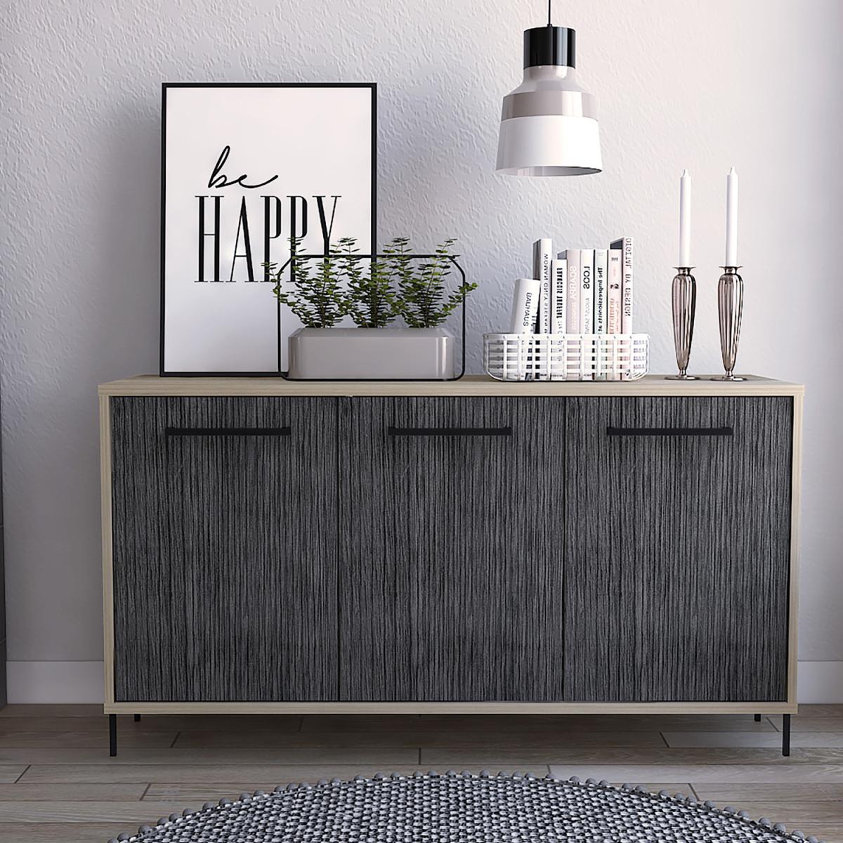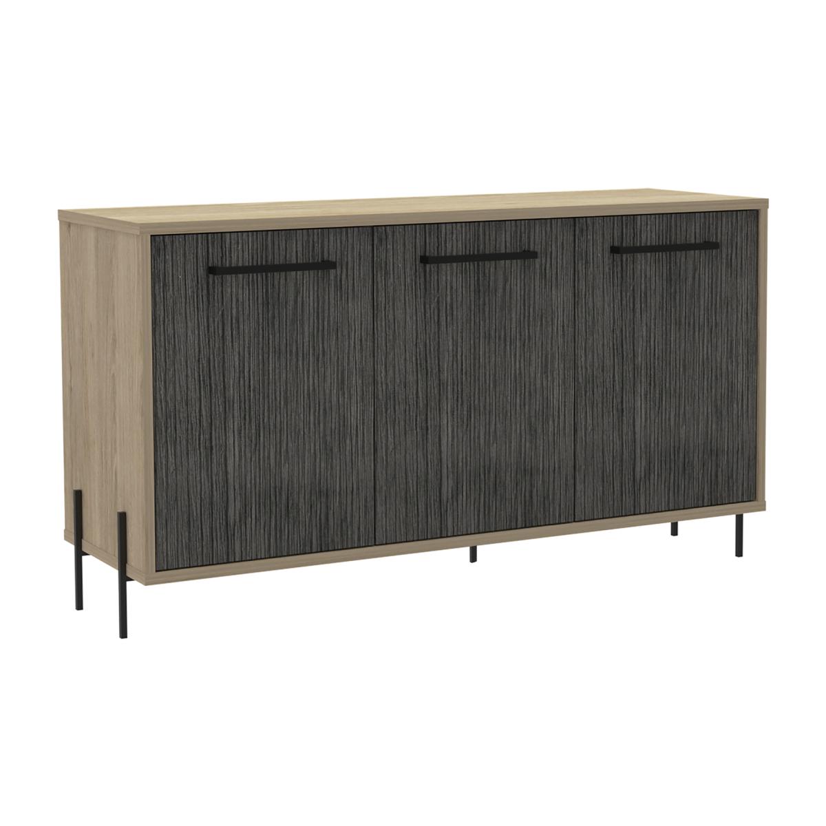 Harvard offers a distinct collection of pieces ideal for casual living. Made from hard wearing, easy to clean, woodgrain texture finished boards in washed oak and contrasting grey grain effect accentuated with black metal bar legs and handles. Our medium sideboard offers plenty of storage space and is practical too. The wipe clean top surface is great for use as a serving area, for display or even for a TV.Underneath you will find single and double door cupboards, both with shelves, so allowing you to store glasses, dinnerware or anything else you want to keep handy in an organised way.