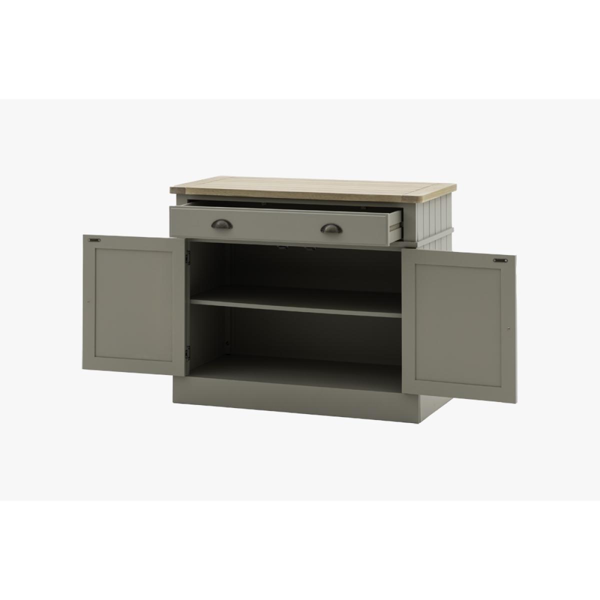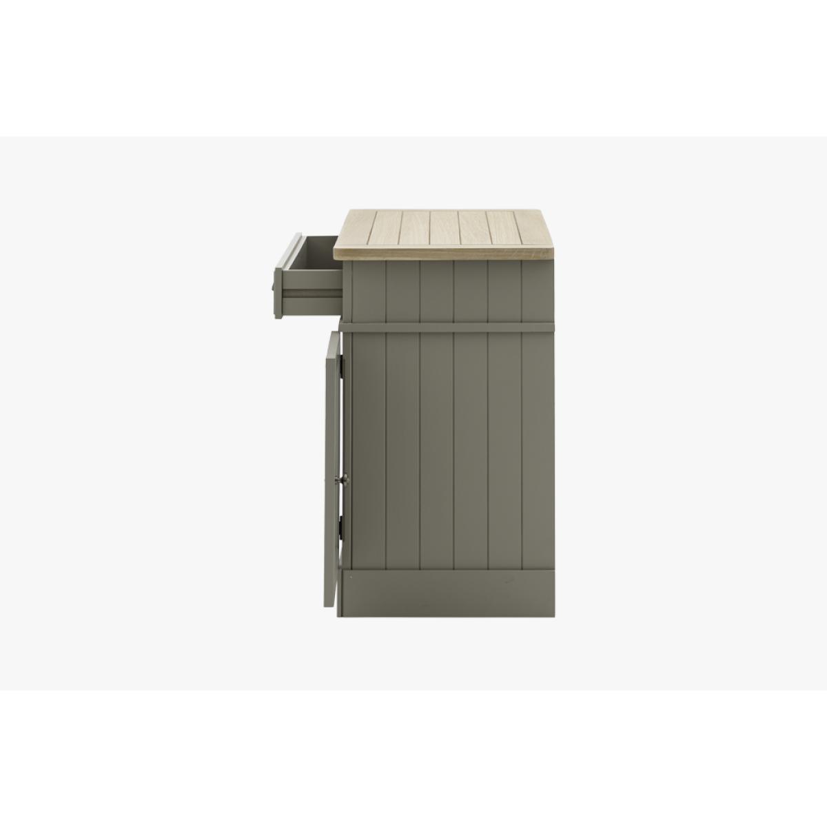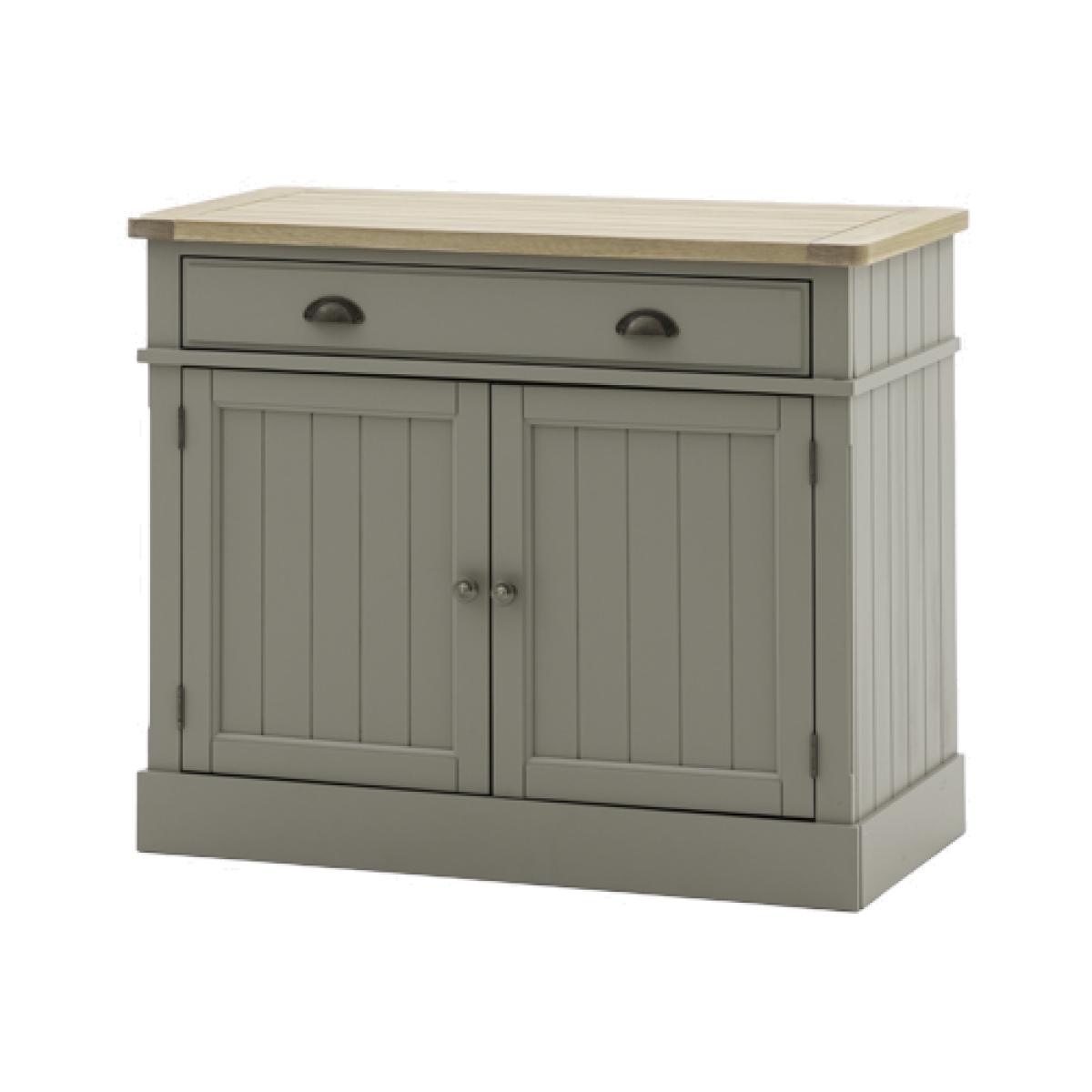 If you're after a stylish update on a farmhouse classic then look no further than the Harvest Sideboard. The hand painted sage green finish and grooved oak top capture all the best of charming country style. With 2 cupboards, adjustable shelves and a single large drawer the Harvest Sideboard not only offers some much needed worktop space but also has plenty of storage space for all your essentials.