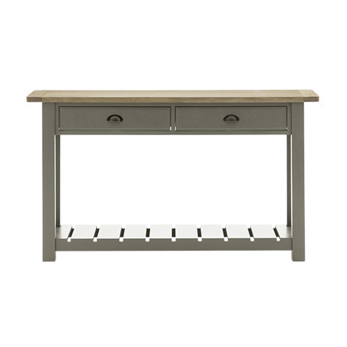 The simple lines, metal handle details, sage hand painted texture and grooved oak top of the Harvest console table makes it perfect for adding a little country charm to your home. With 2 drawers and a low shelf the Harvest console table is the perfect versatile storage solution, a solid staple piece for any home.