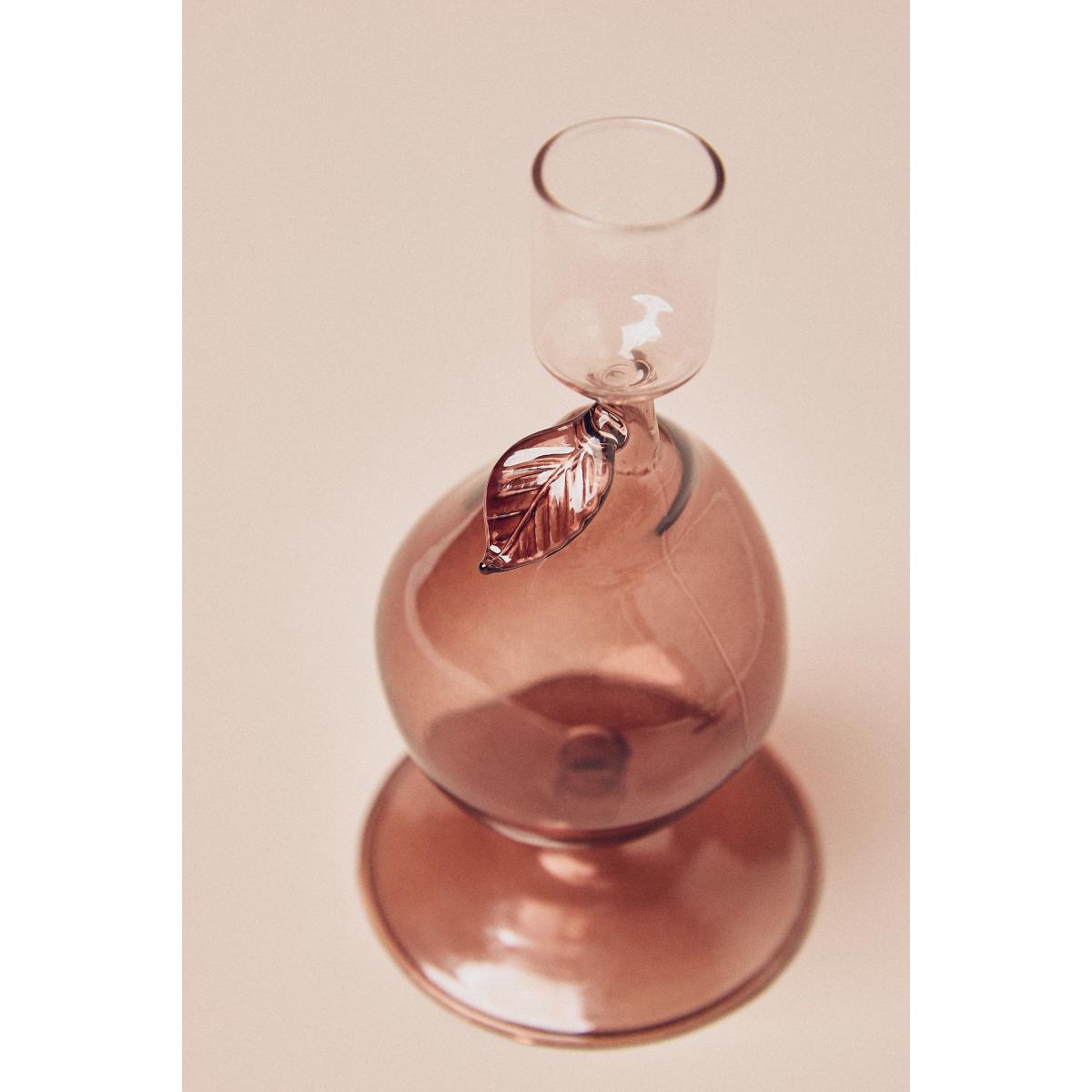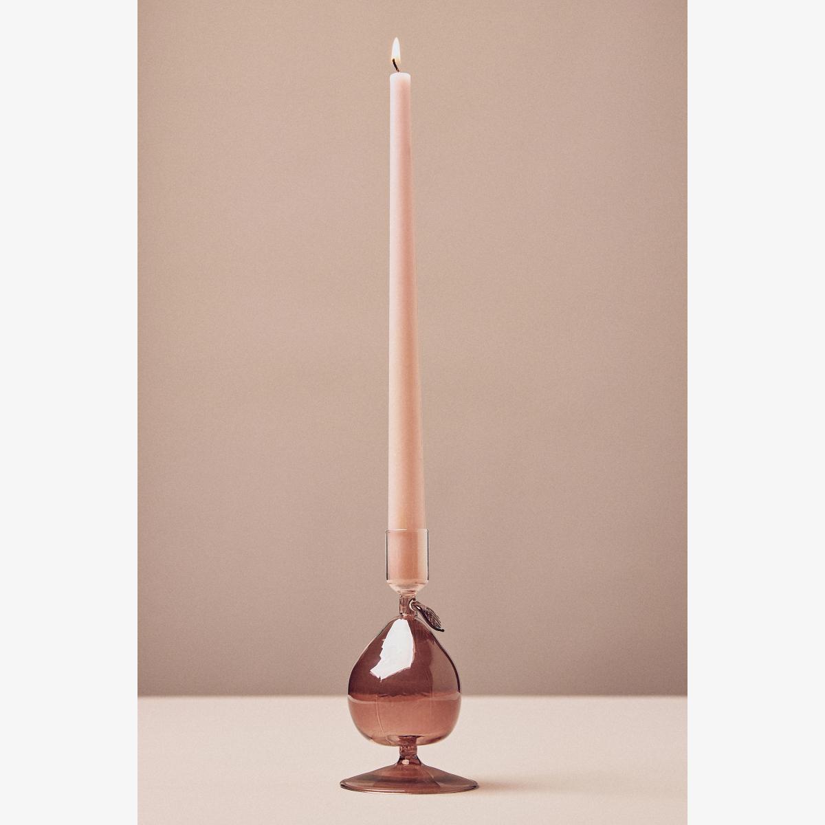 A base of softly tinted glass, shaped like harvest fruit, supports this candle holder, designed to decorate tables for gatherings. Please note: The composition of borosilicate glass allows for beautiful transparency and thermal stability but as with all glassware, please handle with care! * 100% borosilicate glass * Wipe clean with soft cloth * Imported