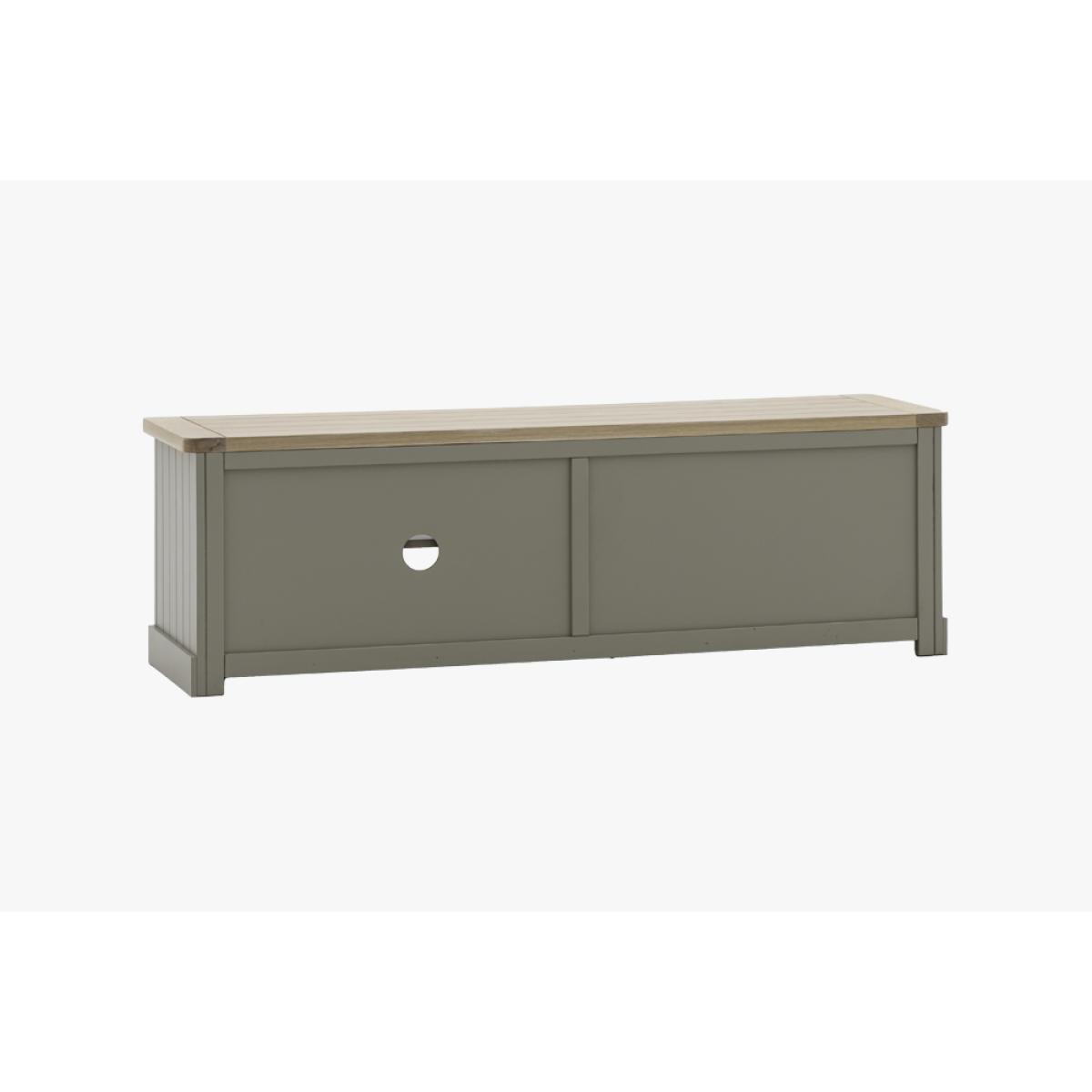 The Harvest media unit brings updated rustic charm to your living space. With a sage green hand painted finish and a grooved oak top that really shines this unit is beautifully crafted and bursting with country style charm. With a 1 door cupboard and adjustable shelves, there's plenty of space for all your entertainment gear, keeping everything neat and tidy.