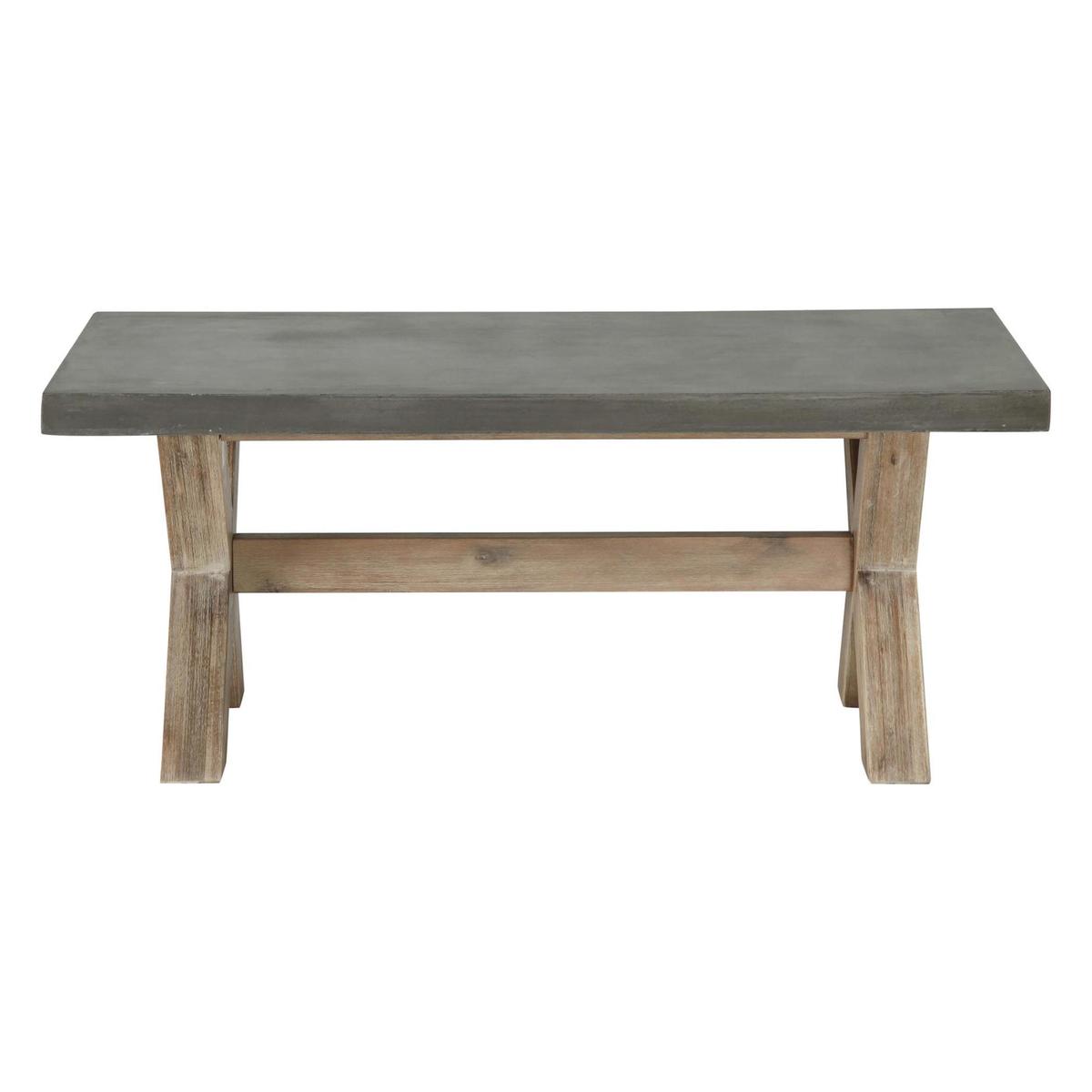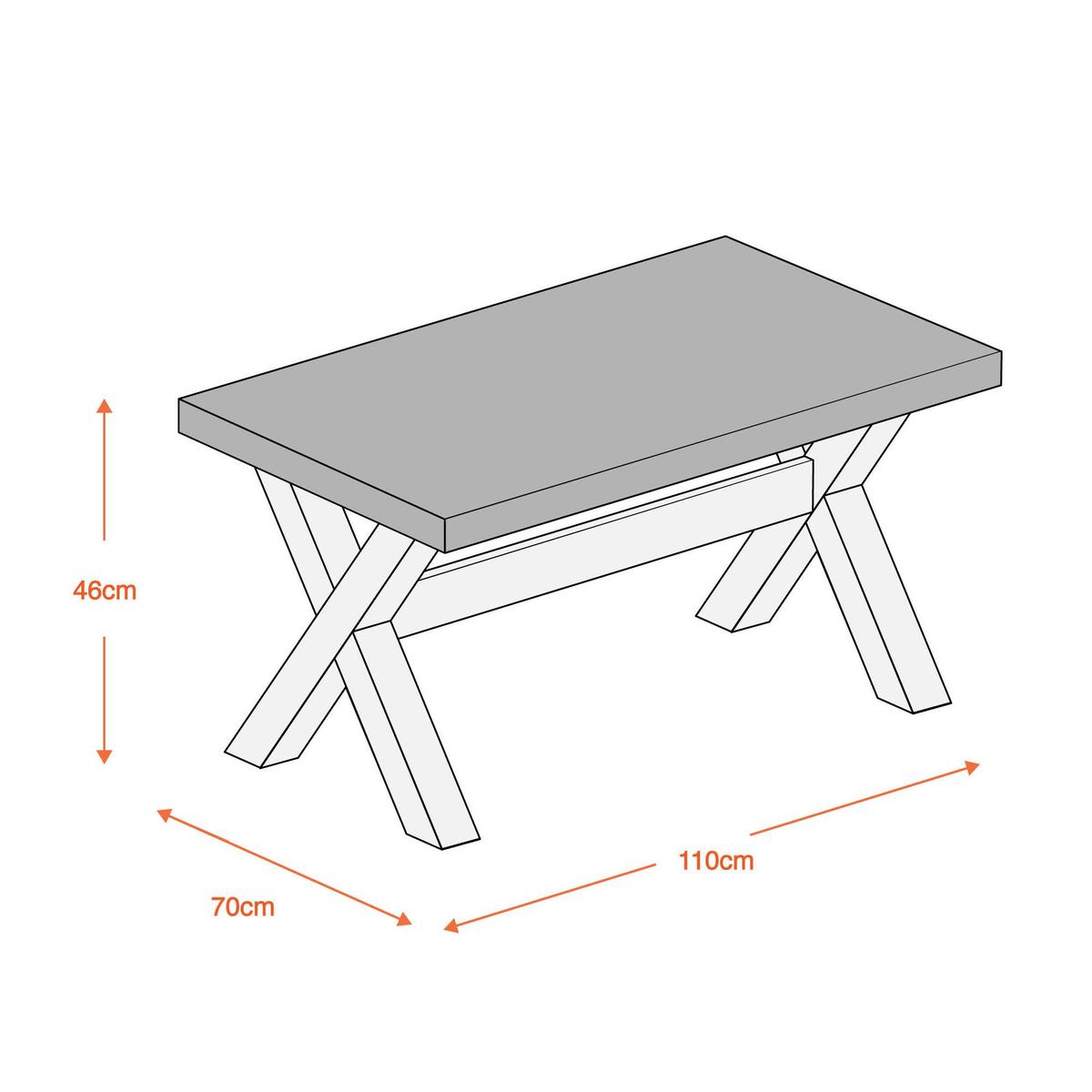 Boasting a concrete top and cross legs, this easy to assemble coffee table is crafted with distressed acacia wood.