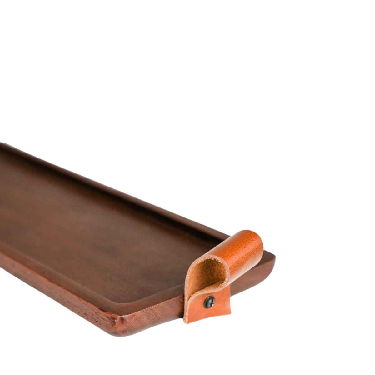 * Beautiful Look & Design * Hand Finished * Made from Acacia Wood * Includes Leather Handles Hand finished, this gorgeous candle tray is crafted from durable and high-quality acacia wood and features stylish leather handles.