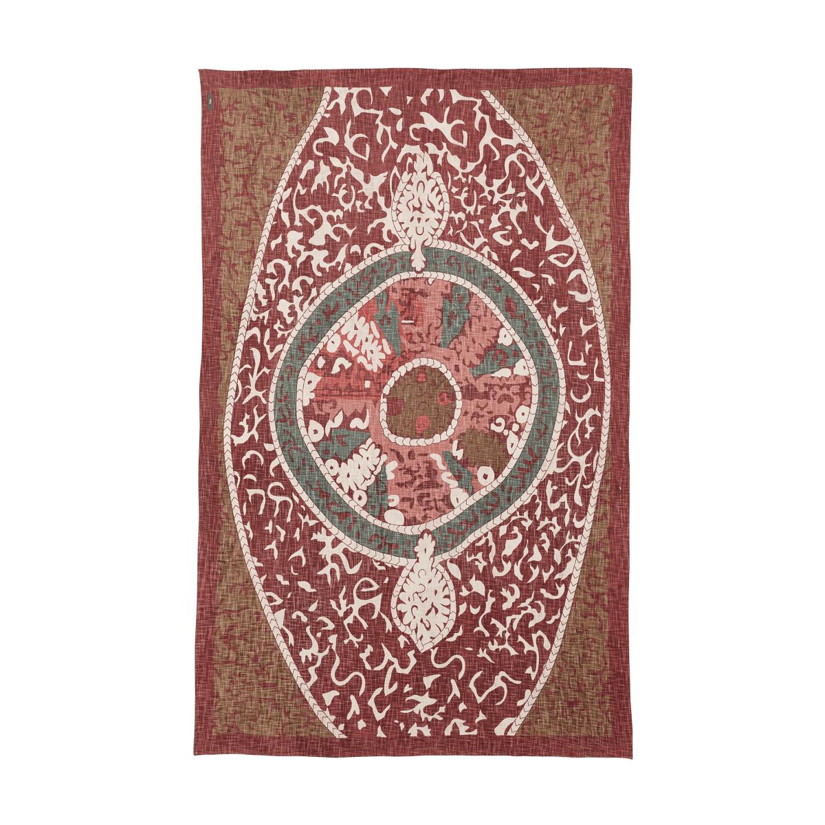 The Haryana throw offers warmth in abundance with its muted tones, achieved from natural pigments, a stone-washing process, and its 100% cotton slub material. This results in a finish eminiscent of heirloom pieces, as though it has been loved by a family for generations. The screen-printed abstract eye design draws attention on one side, and when you want to mix things up, simply flip it over for a more regular, repeated pattern.
