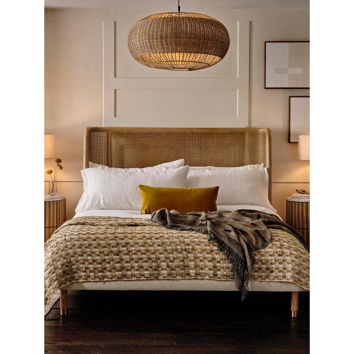 I’m a big fan of the Hasker bed for its natural cane headboard and slim frame - it brings texture without overwhelming a room. It works brilliantly in Scandi, coastal or relaxed boho schemes: think crisp white or linen bedding layered with a cosy throw and a mix of tactile cushions in muted earth tones. Keep your bedside styling simple - a small ceramic lamp, a stack of books or a woven basket for clutter - to let the bed’s clean lines shine. Its low profile also helps smaller rooms feel more spacious, especially when you pair it with a neutral rug and a single statement wall sconce or potted plant.