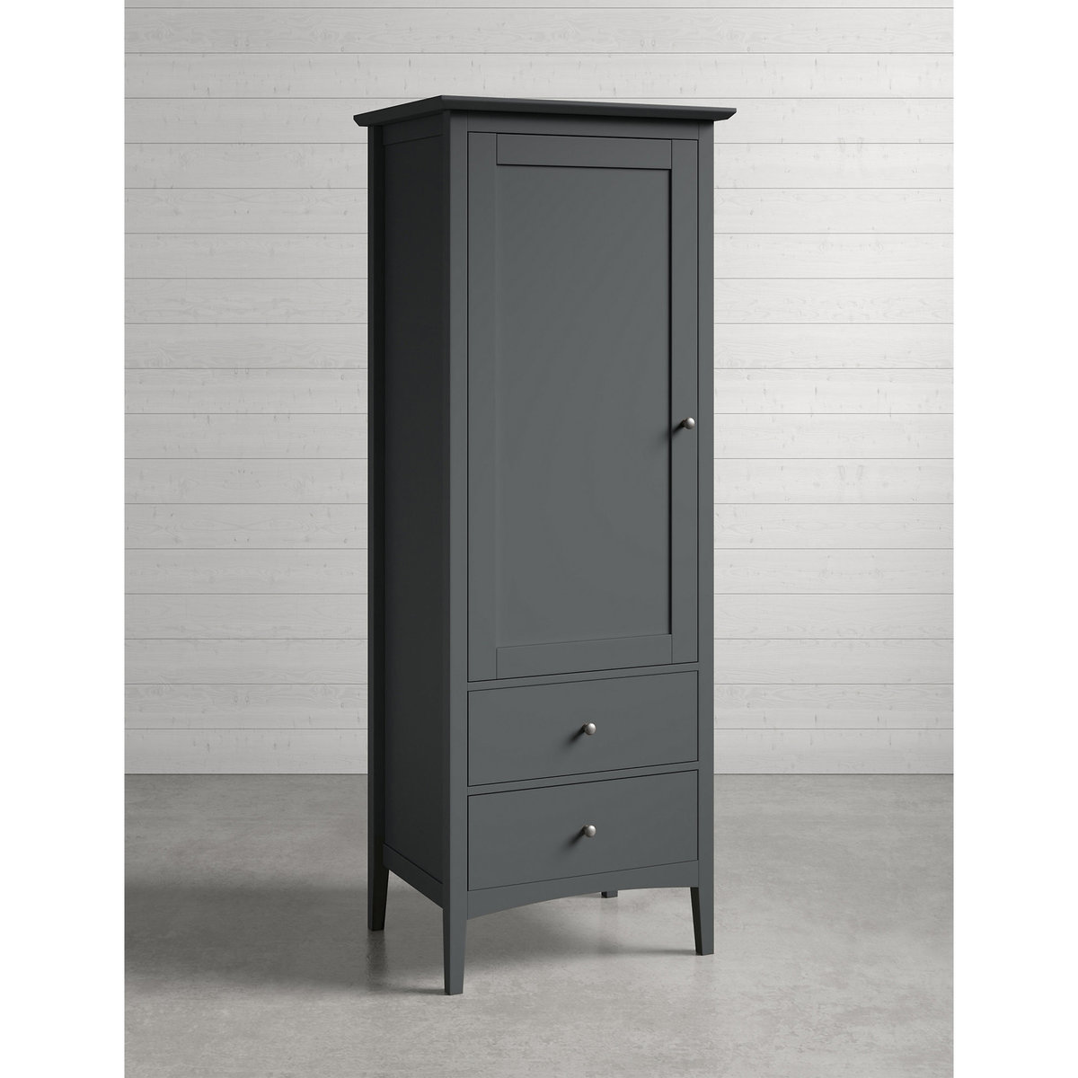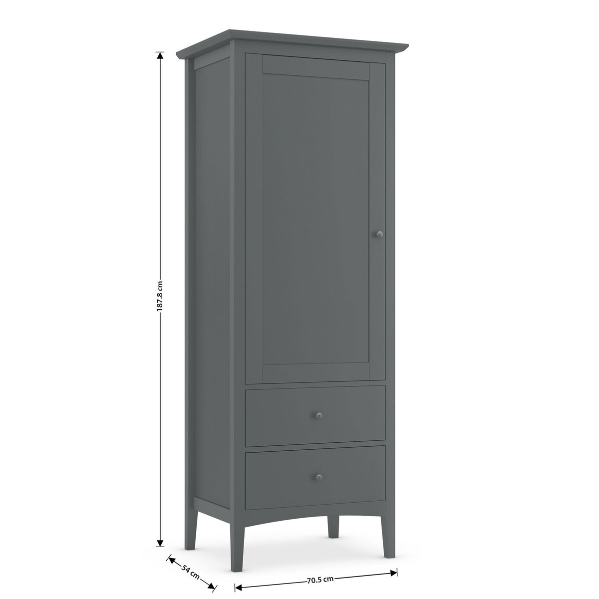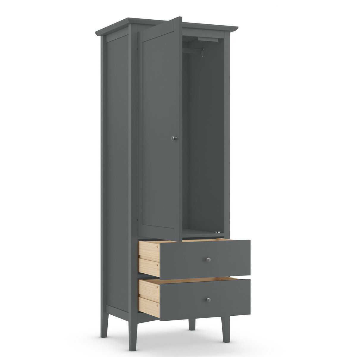 A sleek and stylish storage solution that will effortlessly complement your bedroom decor, this single wardrobe is a compact way to keep your clothes organised. With a spacious compartment with a hanging rail and two lower drawers for you to keep folded clothes or underwear, this small wardrobe is perfect for all your storage needs. The stylish yet understated design is perfectly finished off by four sturdy legs, making this a versatile and dependable addition to your home. We’re so confident our furniture is built to last, our industry-leading guarantee covers any manufacturing failure on all furniture. That’s our promise, and why our furniture comes with a 10-year guarantee that you can trust. Excludes: outdoor furniture and any issues that are a result of normal wear and tear, improper care or accidental damage.