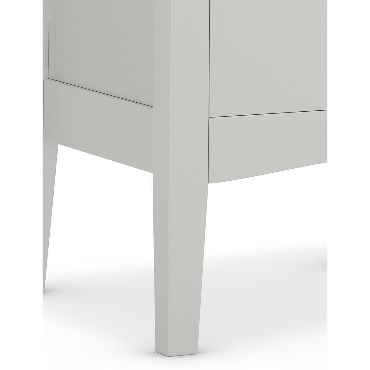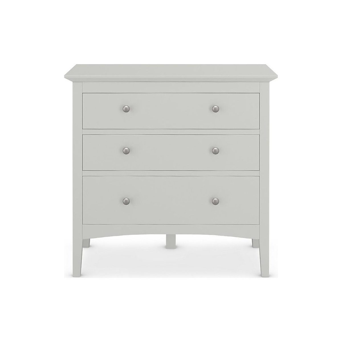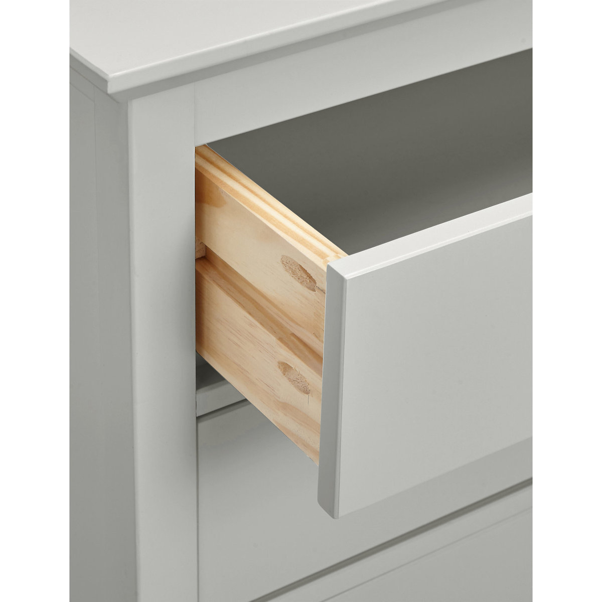 Add this bright three drawer chest to your room for extra storage and style in equal measure. Characterised by its simple design and elegant details, this charming drawer chest features tapered cornices, contrasting metal knobs, and a cut-out plinth for a modern shape that keeps your decor clean and sharp. Featuring three generously sized drawers to store your clothes, this grey drawer chest has been expertly crafted from sustainable wood for a strong and sturdy build