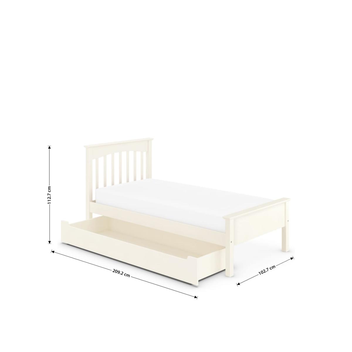 Tidy away some of the clutter and chaos of your child’s bedroom with our handy Hastings children’s storage bed. With a large drawer which stores belongings beneath the frame for neat and tidy rooms, simply pull it out when it’s time to play and slide it back in when it’s time for bed. This delightful children’s bed is crafted from responsibly sourced solid pine wood and is available in a child-safe natural or ivory painted finish.