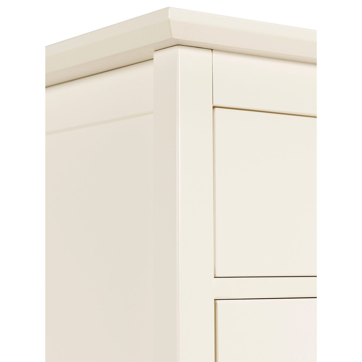I love this tallboy because of its classic, clean lines and versatile ivory finish, making it a great addition to both traditional and modern interiors. It's particularly well-suited for bedrooms or living spaces where you want to add a touch of elegance while keeping storage practical. To style it effectively, consider using minimalist accessories like a small lamp or a stack of books on top to avoid clutter. It works well in light, neutral schemes but can also provide a subtle contrast in rooms with darker or more colourful palettes. Its tall, slender profile makes it an ideal space-saver, so it's perfect for adding storage without overwhelming the room.