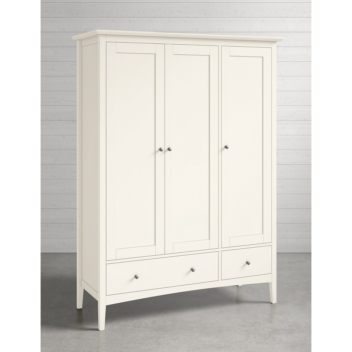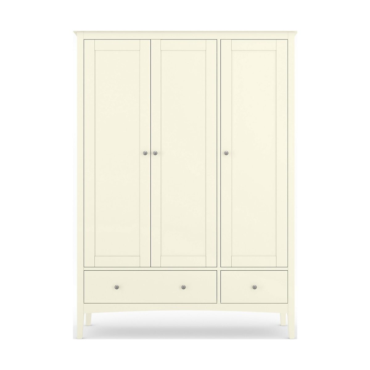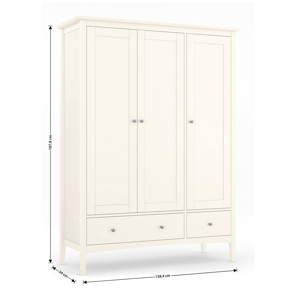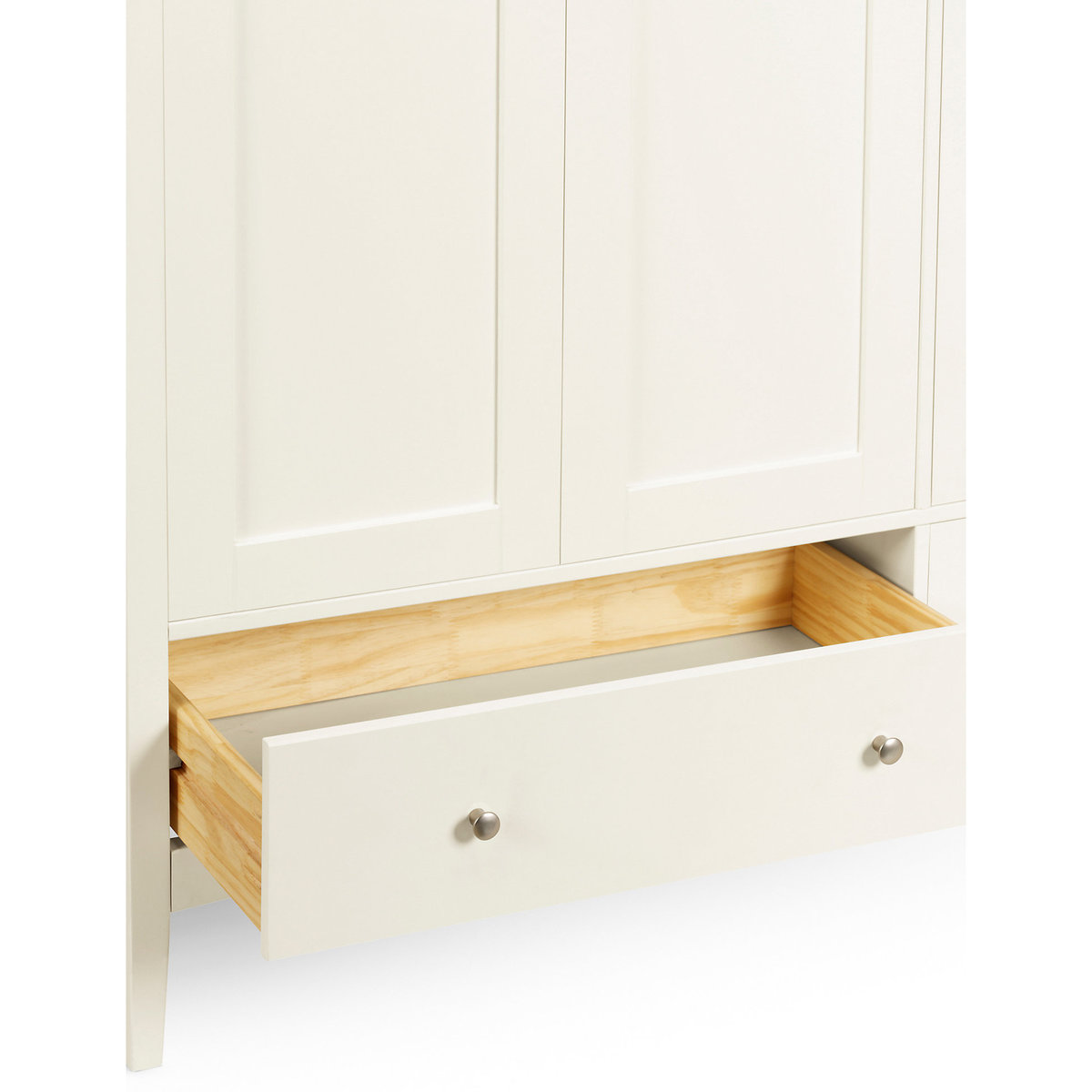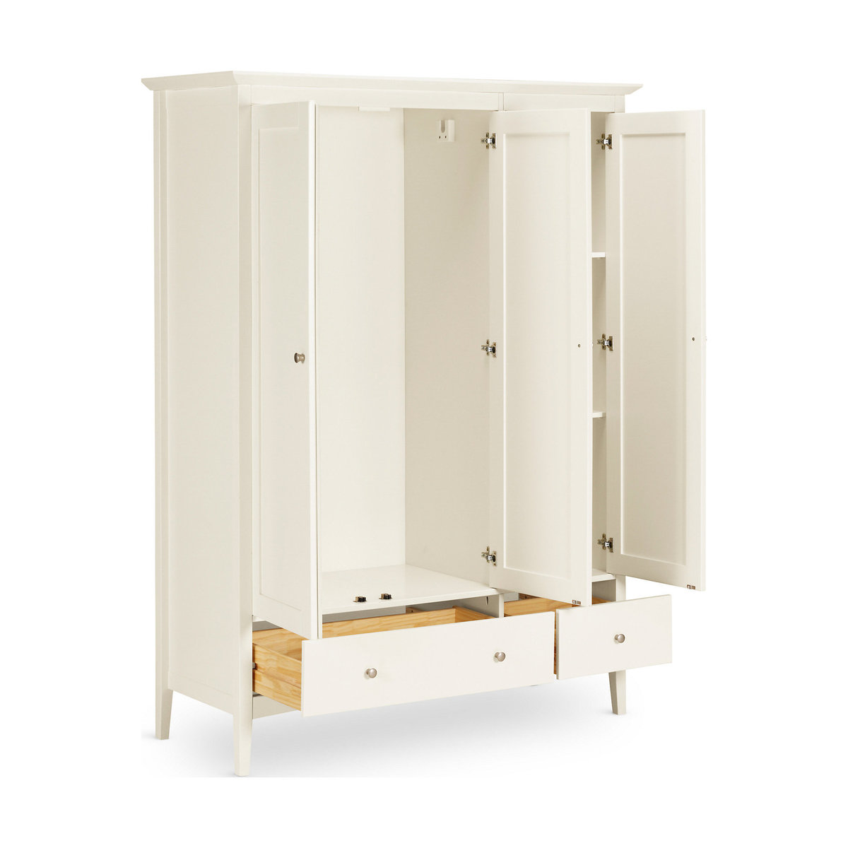 For the ultimate clothes lover, our elegant triple wardrobe from the Hastings Collection might be just what you need. With a double wardrobe plus single wardrobe space and two drawers beneath, one large and one medium, you\u2019ll have plenty of space for all your clothes, with room to add to the collection later. Designed to fit into compact spaces and made from sustainable wood then finished in a classic soft ivory colour with chrome handles, this timeless wardrobe will add a touch of glam to any room.