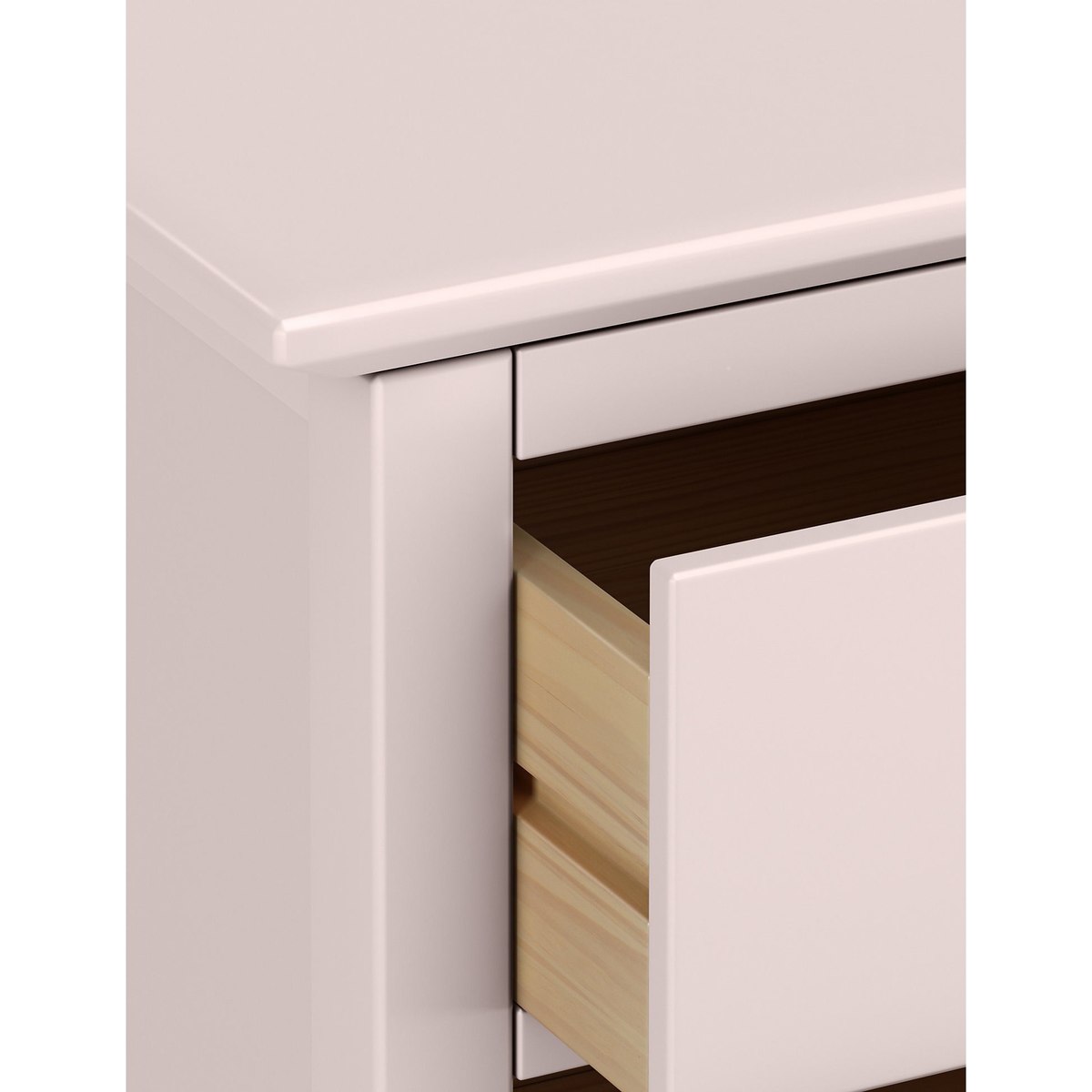 I love the Hastings Powder Pink bedside table for its soft, versatile colour and clean, classic design. It works beautifully in both contemporary and traditional interiors, adding a gentle pop of colour without overwhelming the space. To style it effectively, consider pairing it with textured textiles, like linen or velvet, and adding small decorative objects or a lamp to create a cosy bedside setup. Its drawers offer practical storage for essentials, making it both beautiful and functional-perfect for adding a touch of understated elegance to a girl's room or a soft-toned bedroom scheme.