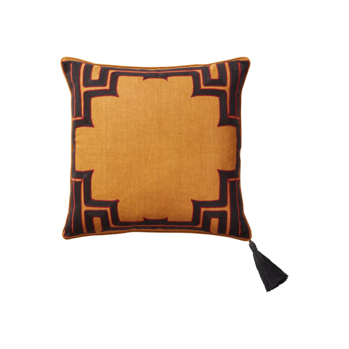 Hasu-Hana Cushion Cover Only (56cmSq)- Saffron/Onyx