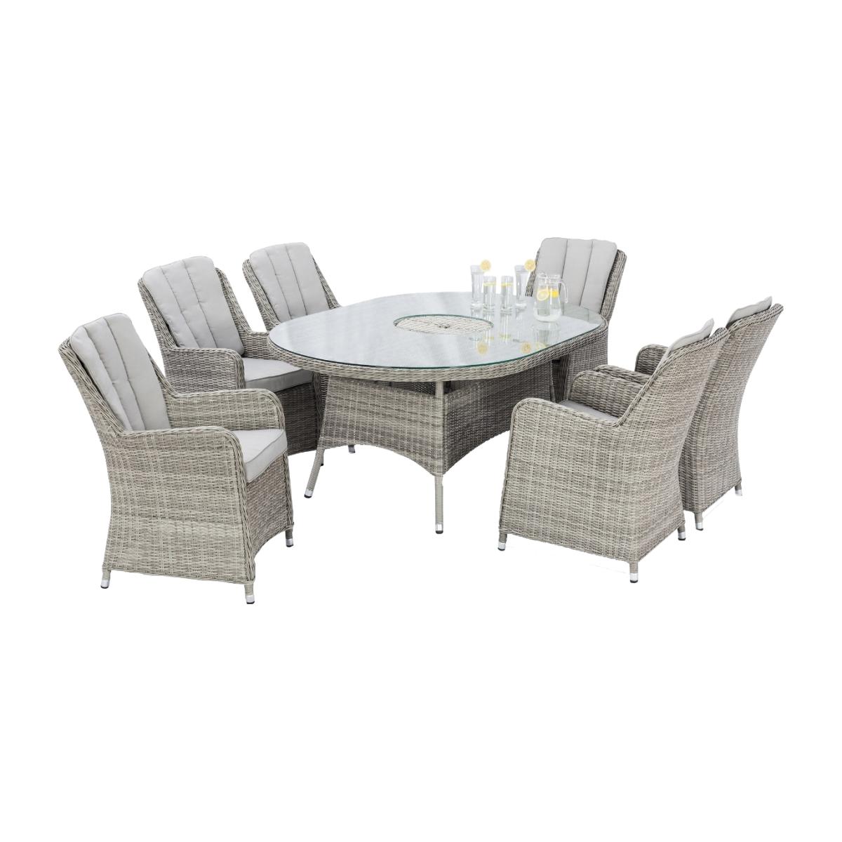 Hathaway 6 Seat Oval Ice Bucket Dining Set with Venice Chairs & Lazy Susan, Grey | Barker & Stonehouse