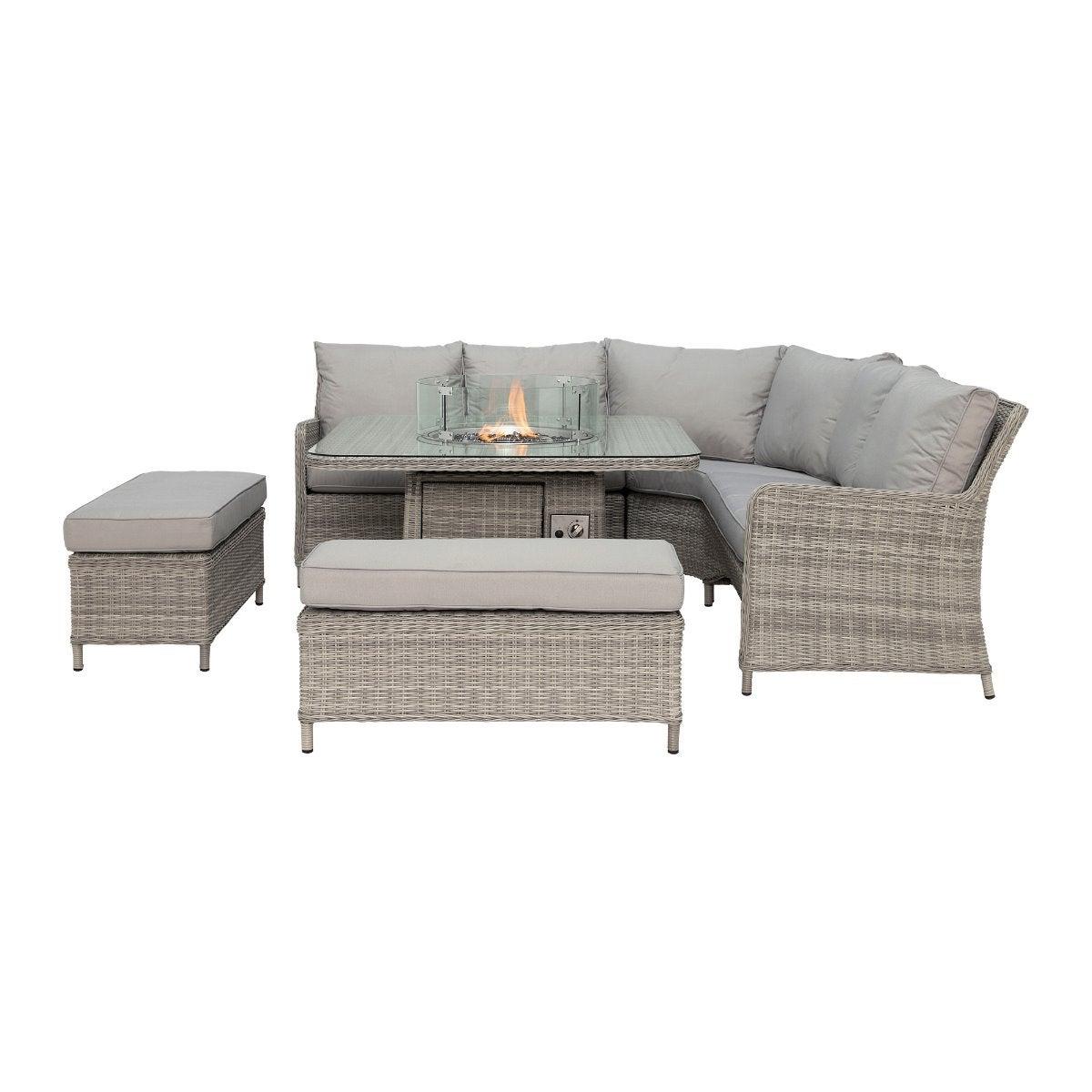 Hathaway Royal Garden Corner Dining Set With Fire Pit, Light Grey | Barker & Stonehouse