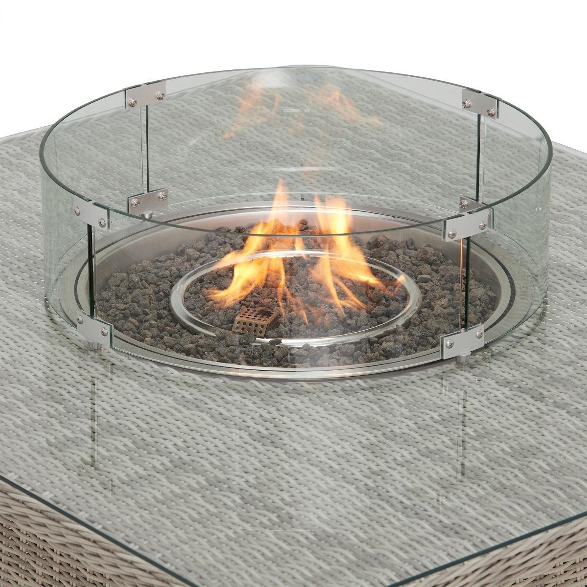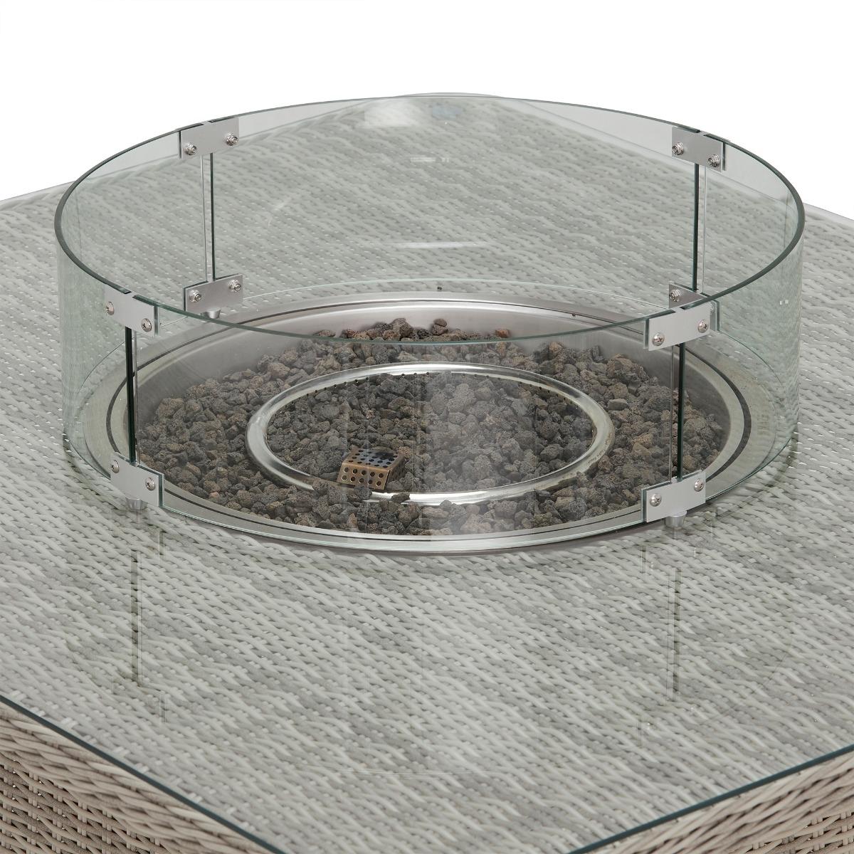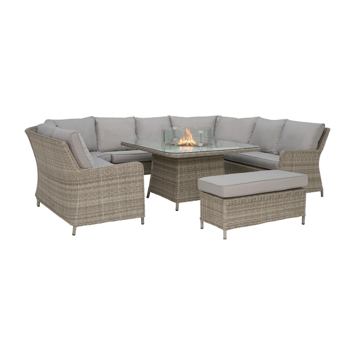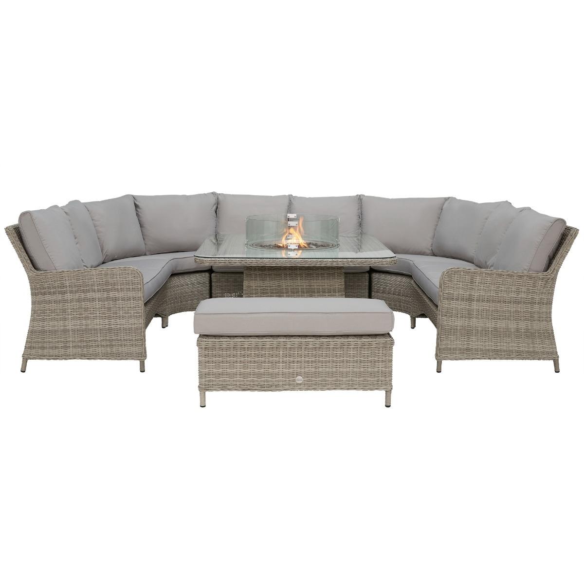 Hathaway Royal U-Shaped Garden Sofa Set with Fire Pit in Light Grey Weave and Grey Fabric