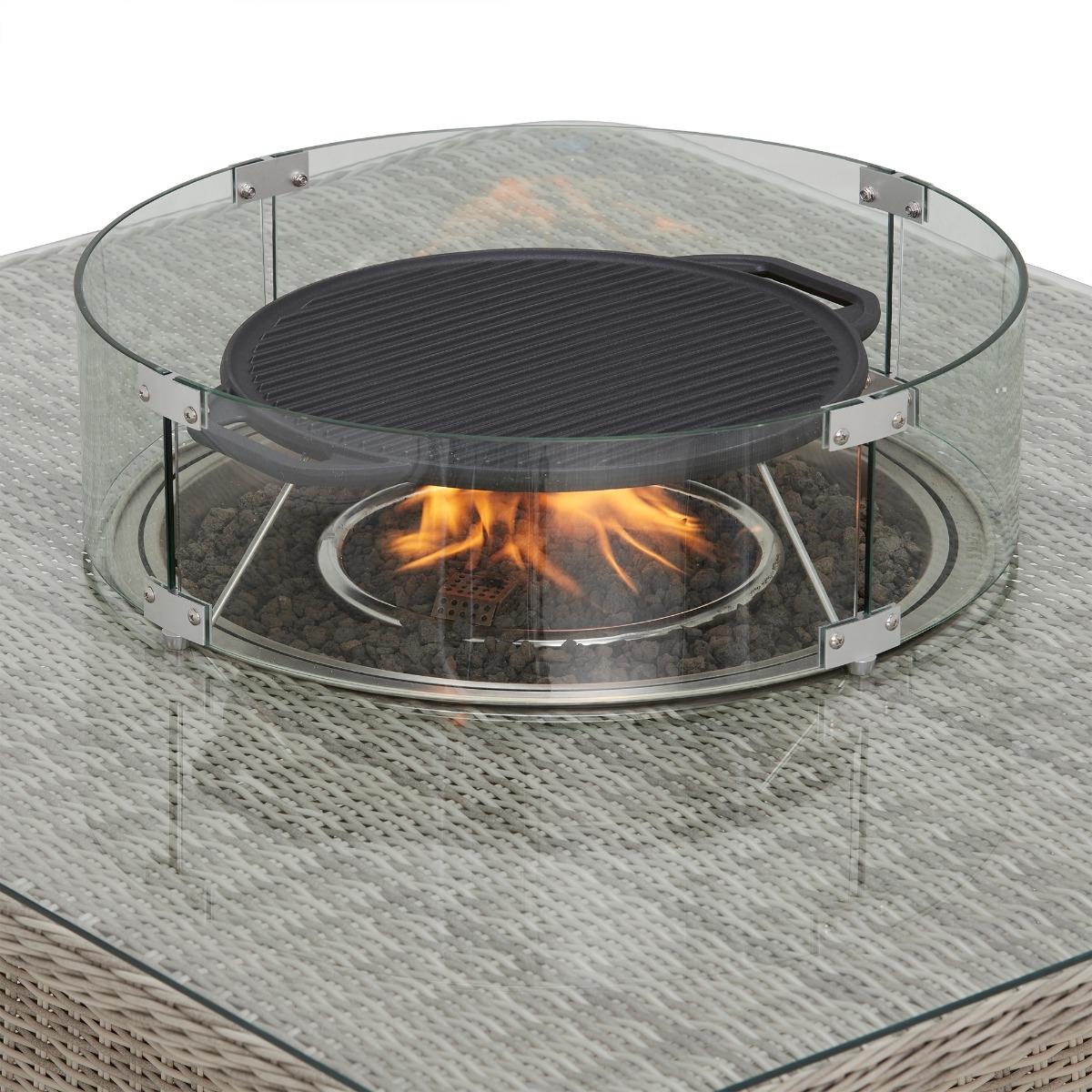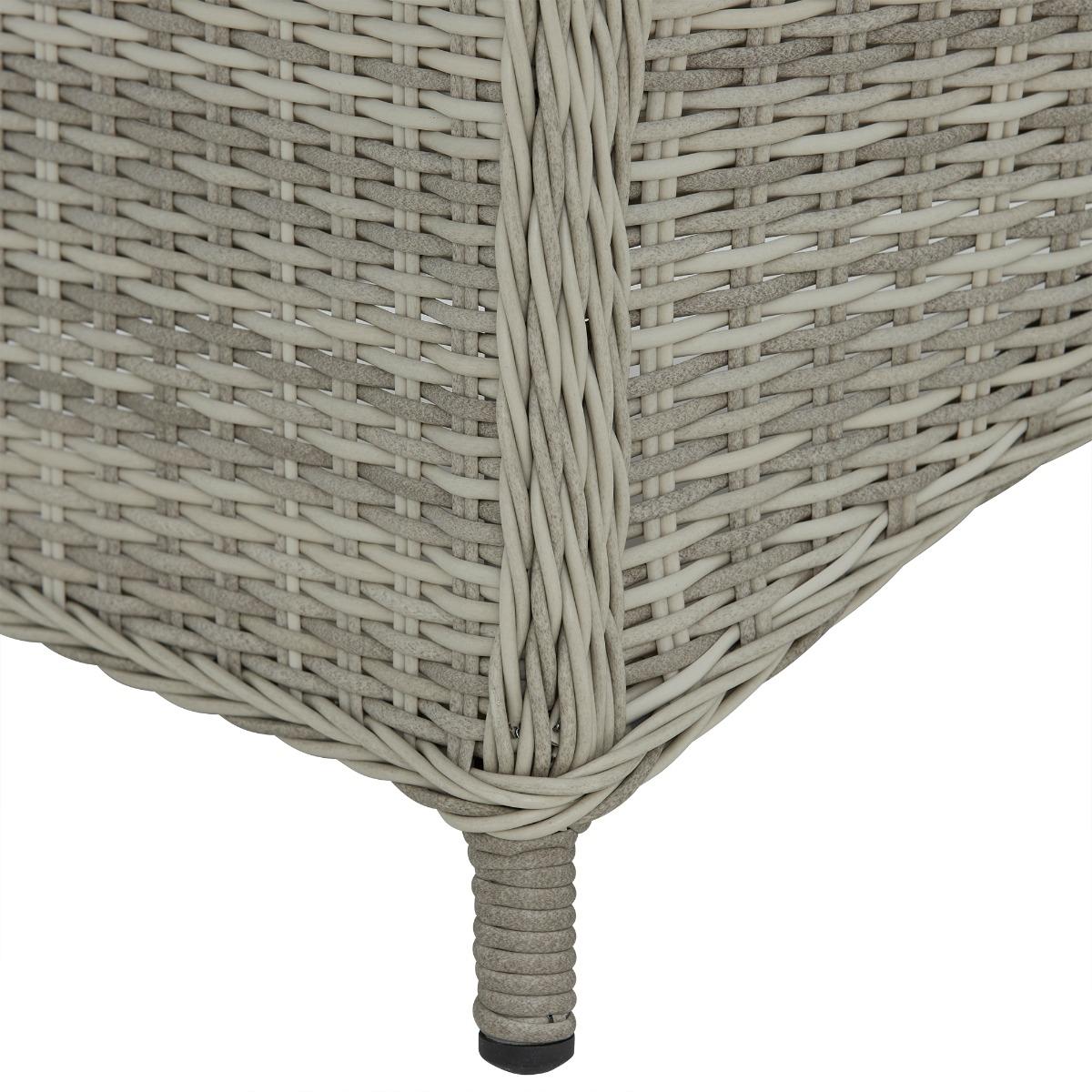 I love this garden lounge set because it offers a relaxed yet stylish look, perfect for outdoor entertaining. The light grey weave combined with grey fabric creates a contemporary vibe that works well in both traditional and modern outdoor spaces. Its U-shape design is great for encouraging socialising, and the built-in fire pit adds warmth and ambience for cooler evenings. For styling tips, consider complementing it with neutral or patterned outdoor cushions and a mix of textured accessories like lanterns or potted greenery to add visual interest. This set is versatile enough to work in contemporary patios, relaxed cottage gardens, or even a stylish balcony setup, making it a really practical choice that elevates outdoor living.