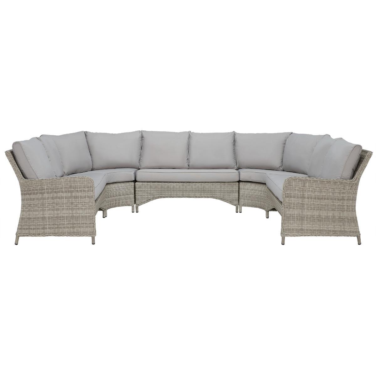 Design. For a cozy evening spent in the garden watching the summer sun go down, the Hathaway Royal U-Shaped Garden Sofa Set is the perfect choice. Complete with a built-in fire pit that will set the scene and look fabulous. Made from weatherproof rattan weave wrapped around high strength aluminum, the Hathaway is a durable option that will stay in good nick for years to come.