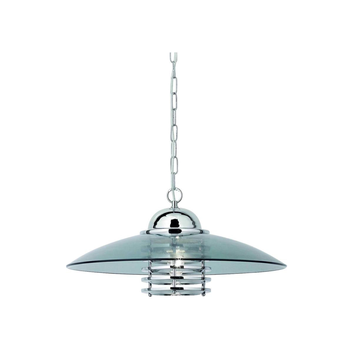 This fitting has a double layer which adds a special character and makes the fitting a centrepiece in the room. The lamp, in the centre of the fitting, is surrounded by a chrome spiral cylinder. The top layer is a smoked glass shade, providing a certain elegance to the fitting. This sophisticated fitting is ideal in any style room.