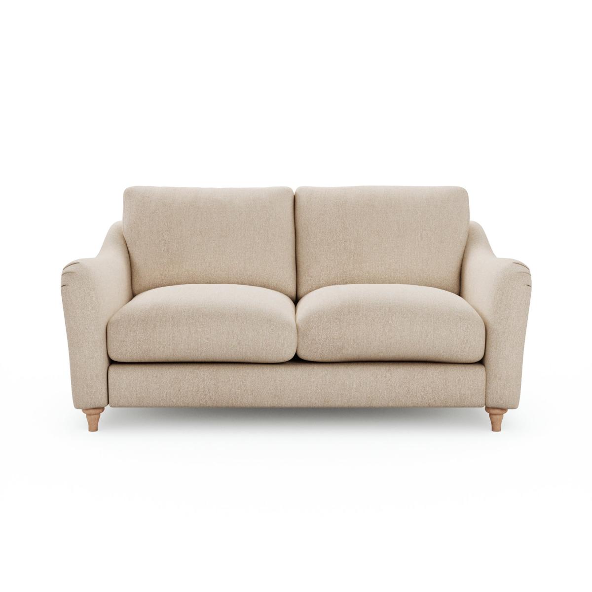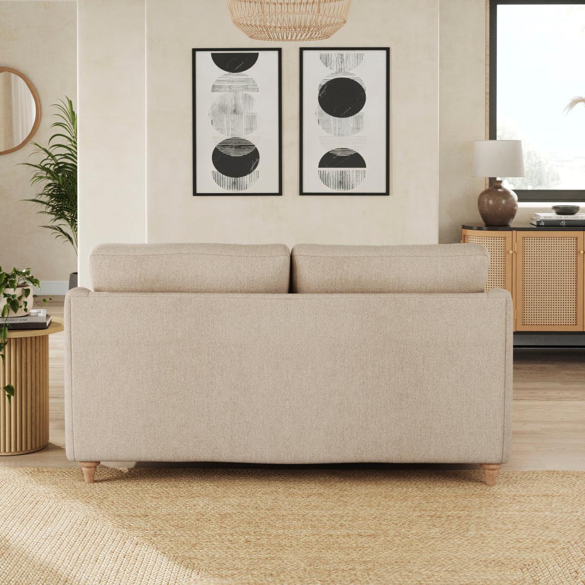 * Contemporary Sofa* Soft Upholstery* Curved Arms* Extra Pleat Detail Crafted with comfort and elegance in mind, this sofa combines plush cosiness with contemporary charm. Sink into its sumptuously soft cushions and feel the stress of the day melt away, enveloped in the comforting embrace of the cosy weave upholstery. Perfect for intimate gatherings or moments of solitude, the 2 seater design offers ample space without compromising on style. This product has fibre filled seat cushions. This means they require vigorous plumped by shaking and redistributing the fibres daily. This will add air back into the fibres and preventing clumping, flattening and the seat dipping.