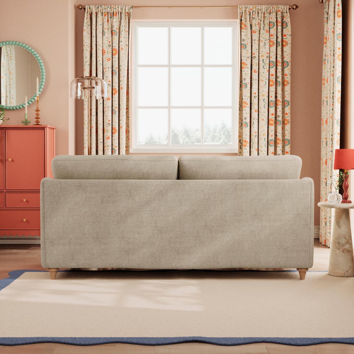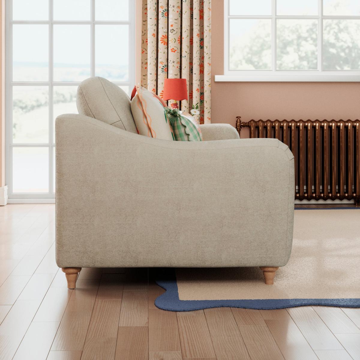 I love this sofa for its timeless, versatile look and the plush chenille fabric, which offers both comfort and a cosy feel. It works particularly well in relaxed, inviting interiors such as country, shabby chic, or contemporary spaces aiming for a softer, homely vibe. For styling, consider pairing it with textured cushions in complementary colours or simple throws to emphasise its tactile quality. It’s a practical choice for homes with family or entertaining guests, as the plush fabric disguises slight wear and adds warmth underfoot. To keep it looking fresh, avoid overly dark or slick surroundings that might clash with its soft, natural tone and fabric feel.
