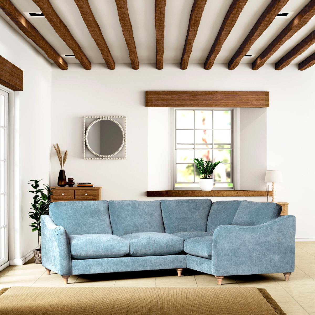 * Contemporary Sofa* Soft Upholstery* Curved Arms* Extra Pleat Detail* Left or Right Hand Facing Options With elegantly curved arms and an extra pleat detail, this corner chaise boasts a sumptuously deep fibre-filled seat crafted with precision and care. The exquisite Tonal Plush Chenille upholstery provides a diverse array of beautiful shades to complement any interior. Choose between left or right-hand facing to tailor the sofa to your space. This product has fibre filled seat cushions. This means they require vigorous plumped by shaking and redistributing the fibres daily. This will add air back into the fibres and preventing clumping, flattening and the seat dipping.
