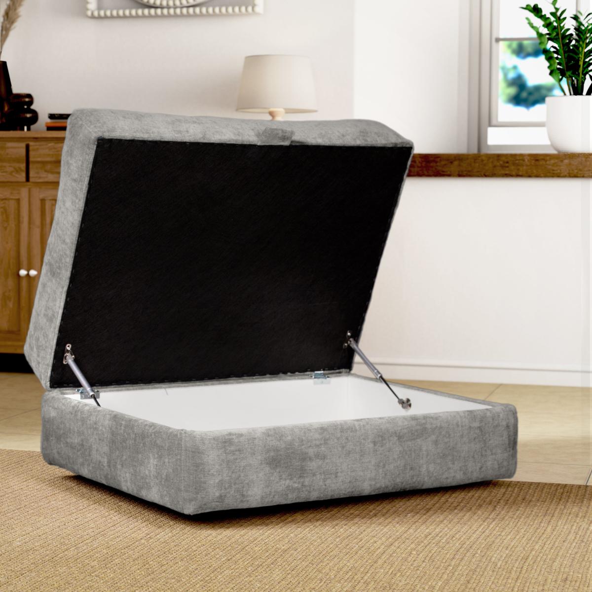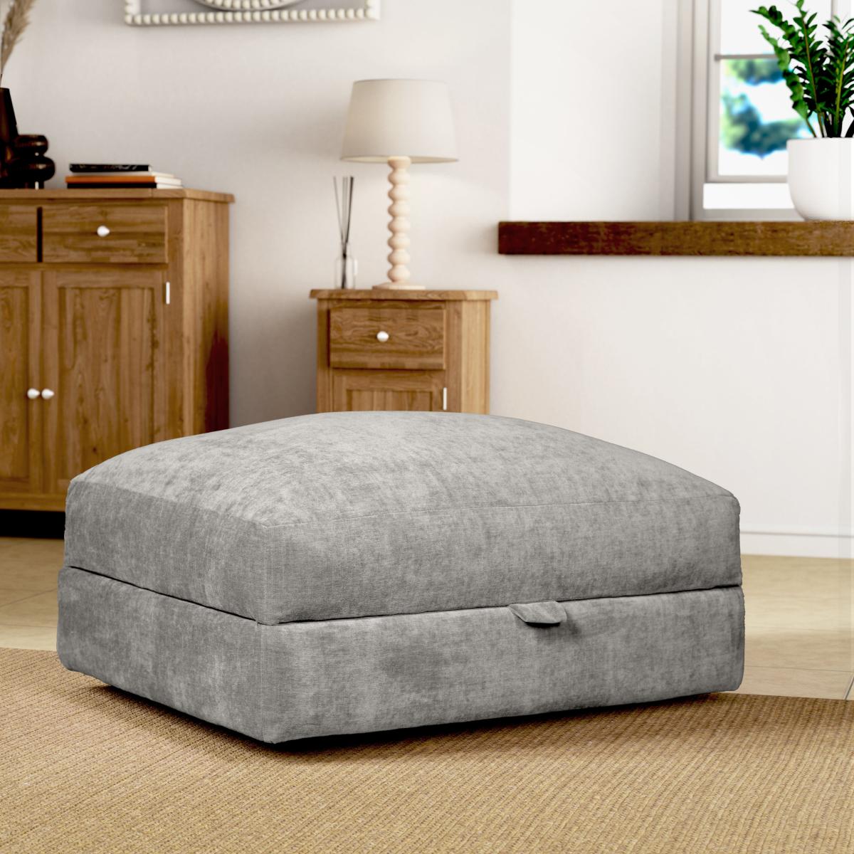 Hattie Tonal Plush Chenille Storage Footstool Tonal Plush Chenille Grey