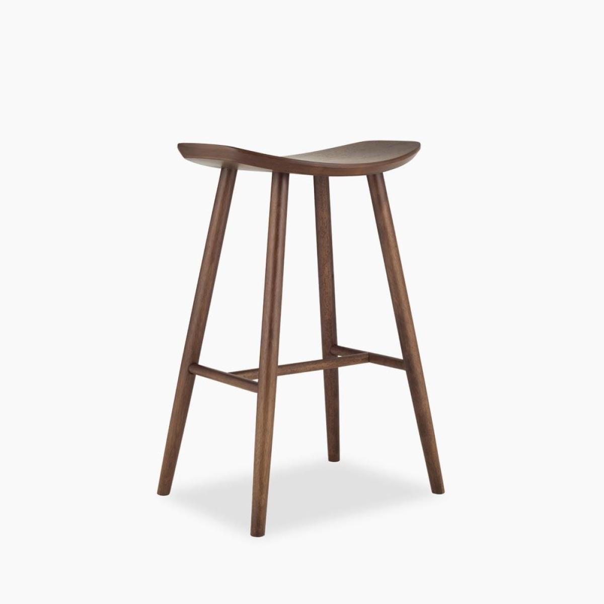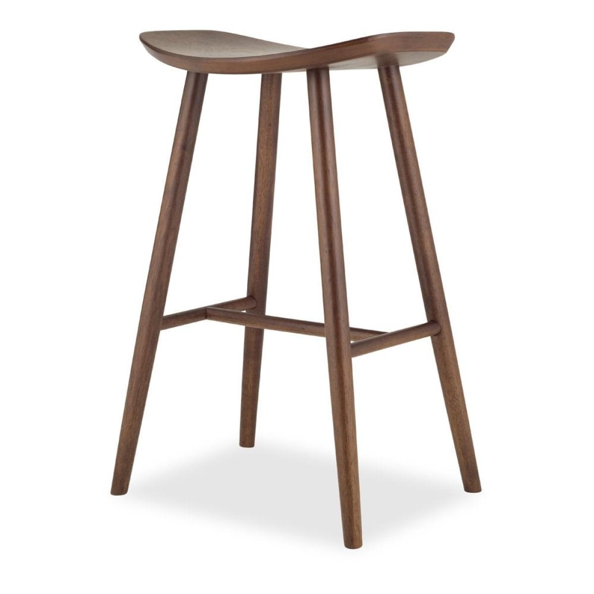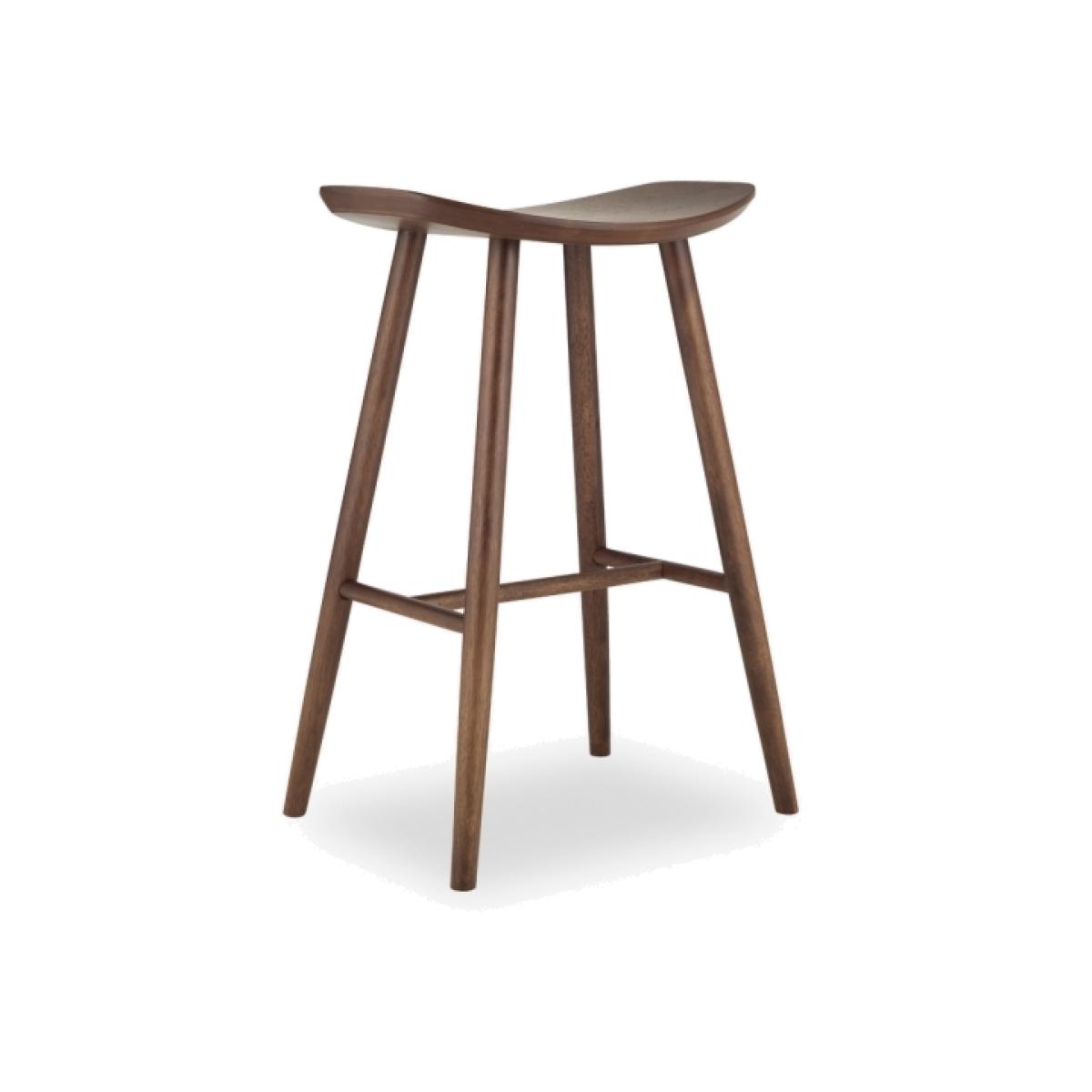 A chic addition to your breakfast bar, counter or kitchen island, this Hatton wooden bar stool in walnut gives a burst of style to any dining space. Defined by a smooth saddle seat and tapered legs, with a built-in footrest, this modern stool makes the ideal bar furniture for everyday meals with the family or catching up with friends over a drink. Available in a range of colours and sizes - our Hatton creates the perfect dining and lounge experience when paired with pendants lights or a bar table of your choice. Note:Wooden furniture will vary in grain pattern, texture and colour. These natural qualities of the wood used makes this material unique and beautiful.