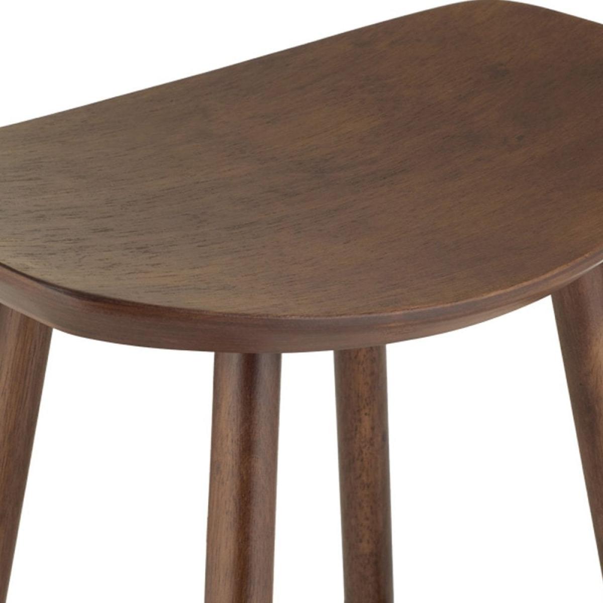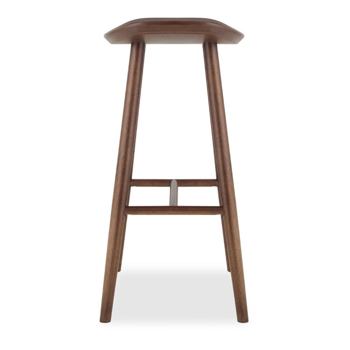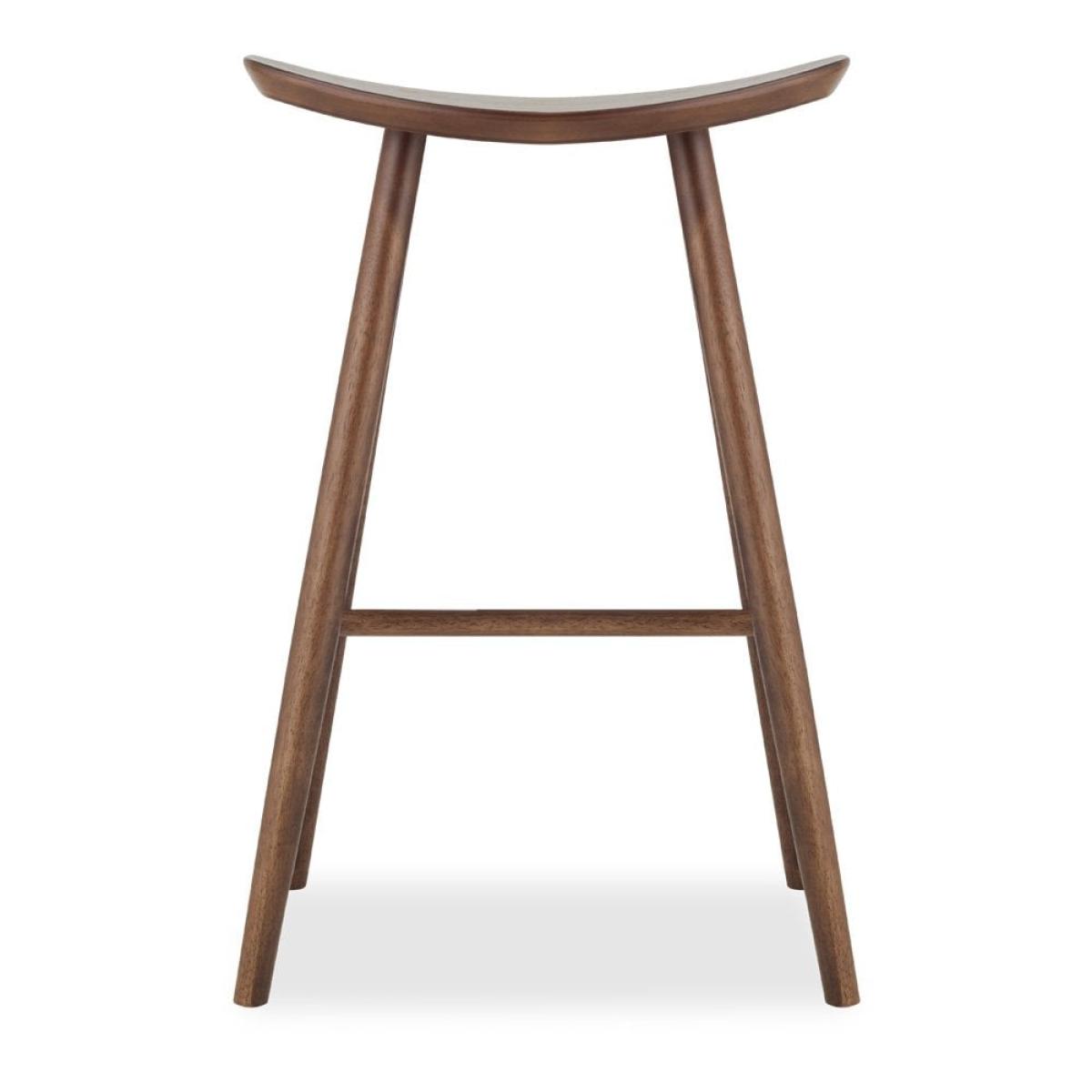 A chic addition to your breakfast bar, counter or kitchen island, this Hatton wooden bar stool in walnut gives a burst of style to any dining space. Defined by a smooth saddle seat and tapered legs, with a built-in footrest, this modern stool makes the ideal bar furniture for everyday meals with the family or catching up with friends over a drink. Available in a range of colours and sizes - our Hatton creates the perfect dining and lounge experience when paired with pendants lights or a bar table of your choice. Note:Wooden furniture will vary in grain pattern, texture and colour. These natural qualities of the wood used makes this material unique and beautiful.