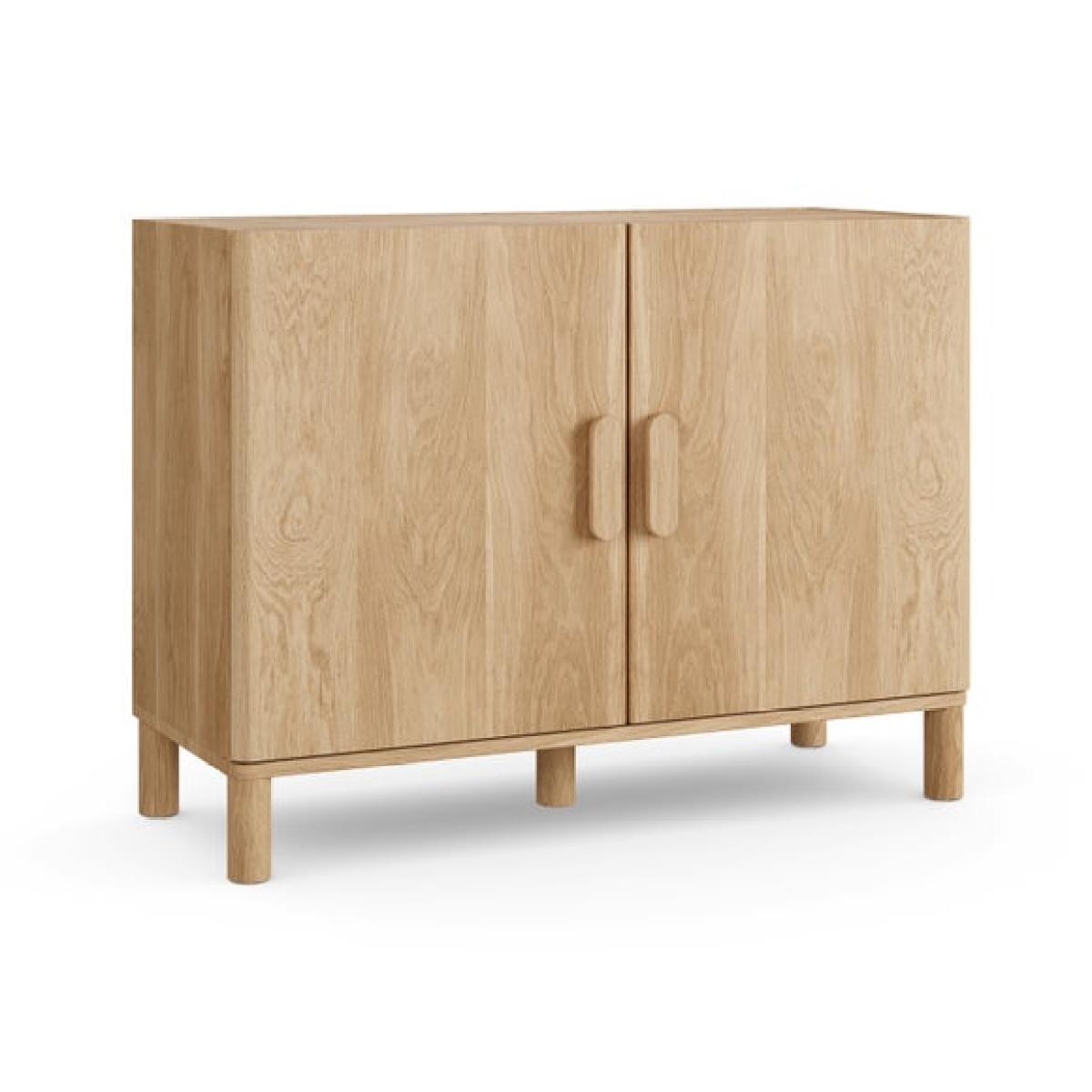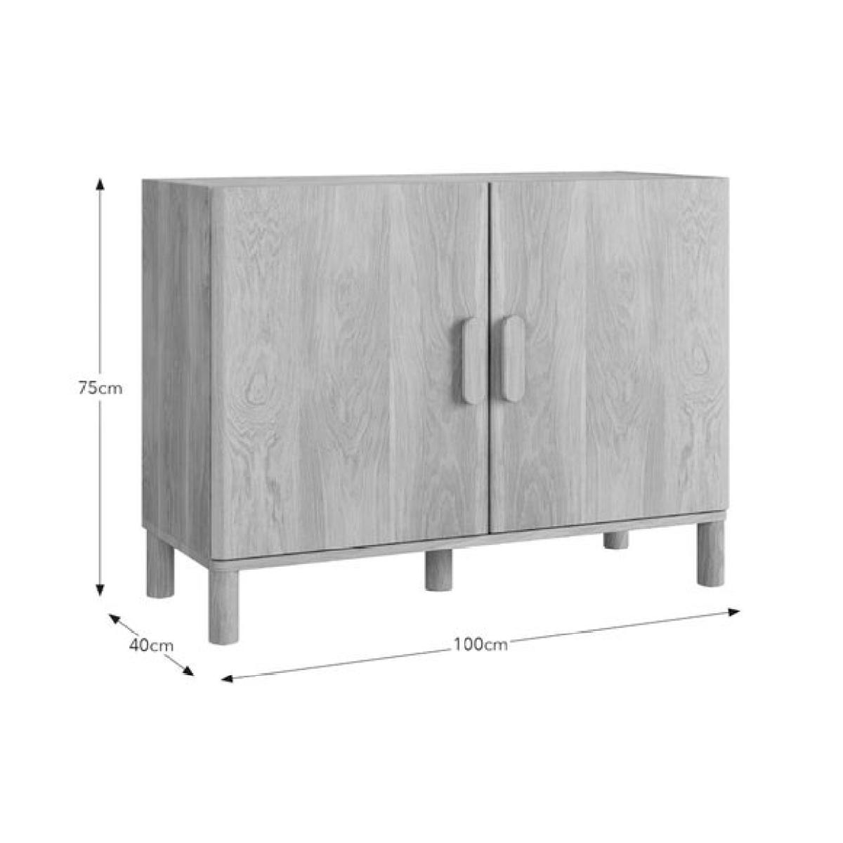 * Wooden frame* Internal storage* Compact design* Modern style Compact yet versatile, this small sideboard is a great storage solution for smaller spaces. Behind its doors, the internal storage keeps household items neatly organised, while the oak effect finish gives it a natural, understated look.