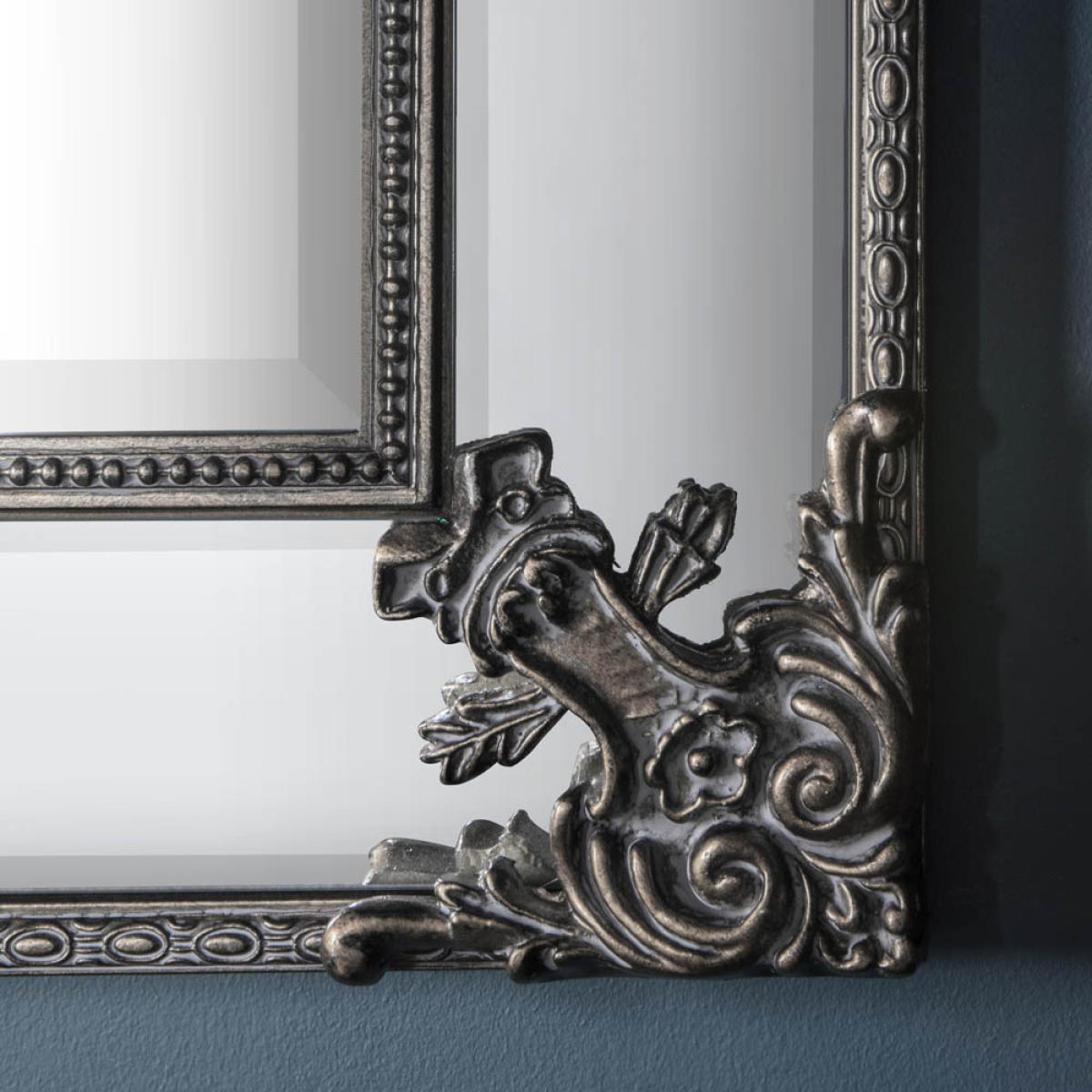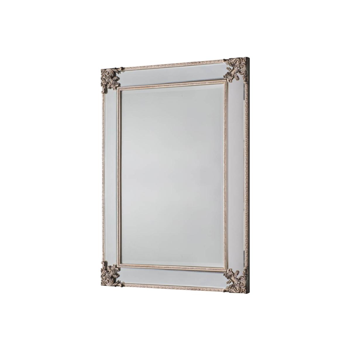 Beautifully crafted mirror with a wooden frame and baroque details. Available in two sizes, this delicate mirror suits any living space. Shape: Rectangle. Material: Glass, MDF, Wood. Colour/Finish: Champagne. Mount Type: Wall.