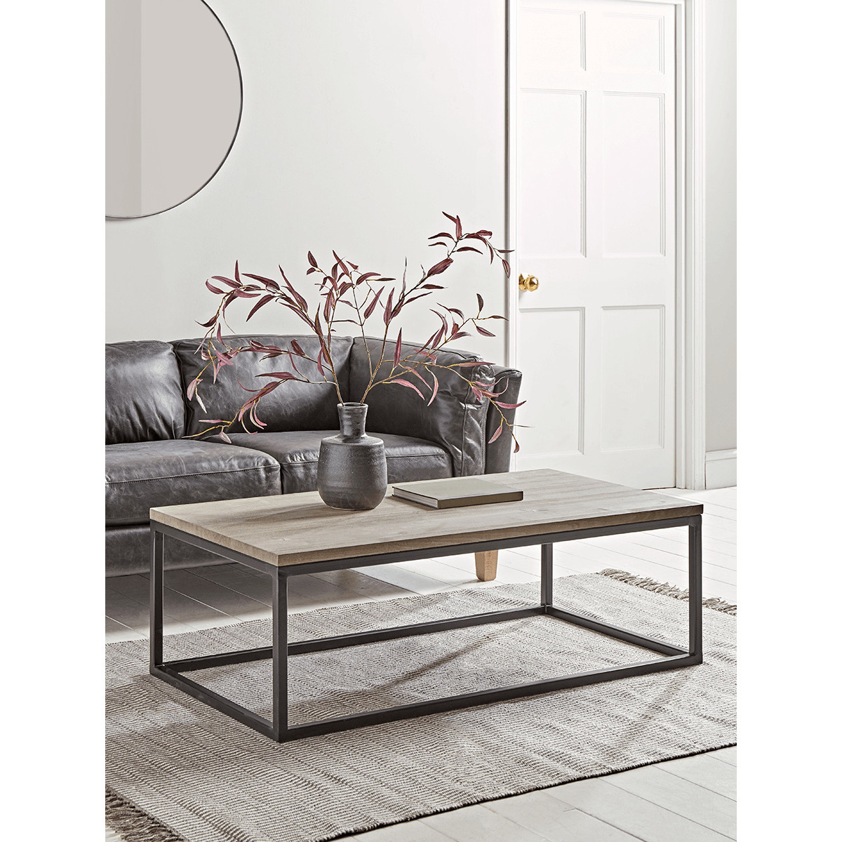 In material and design our statement coffee table is both uncomplicated and bold. A smooth finished wood top gives a beautiful tone, and a contemporary metal frame confirms the generous form of this piece. The perfect centrepiece for any lounge, recreate our look with Hallie Rug, Textured Black Vase and our Three Slim Eucalyptus Sprays - Burgundy.