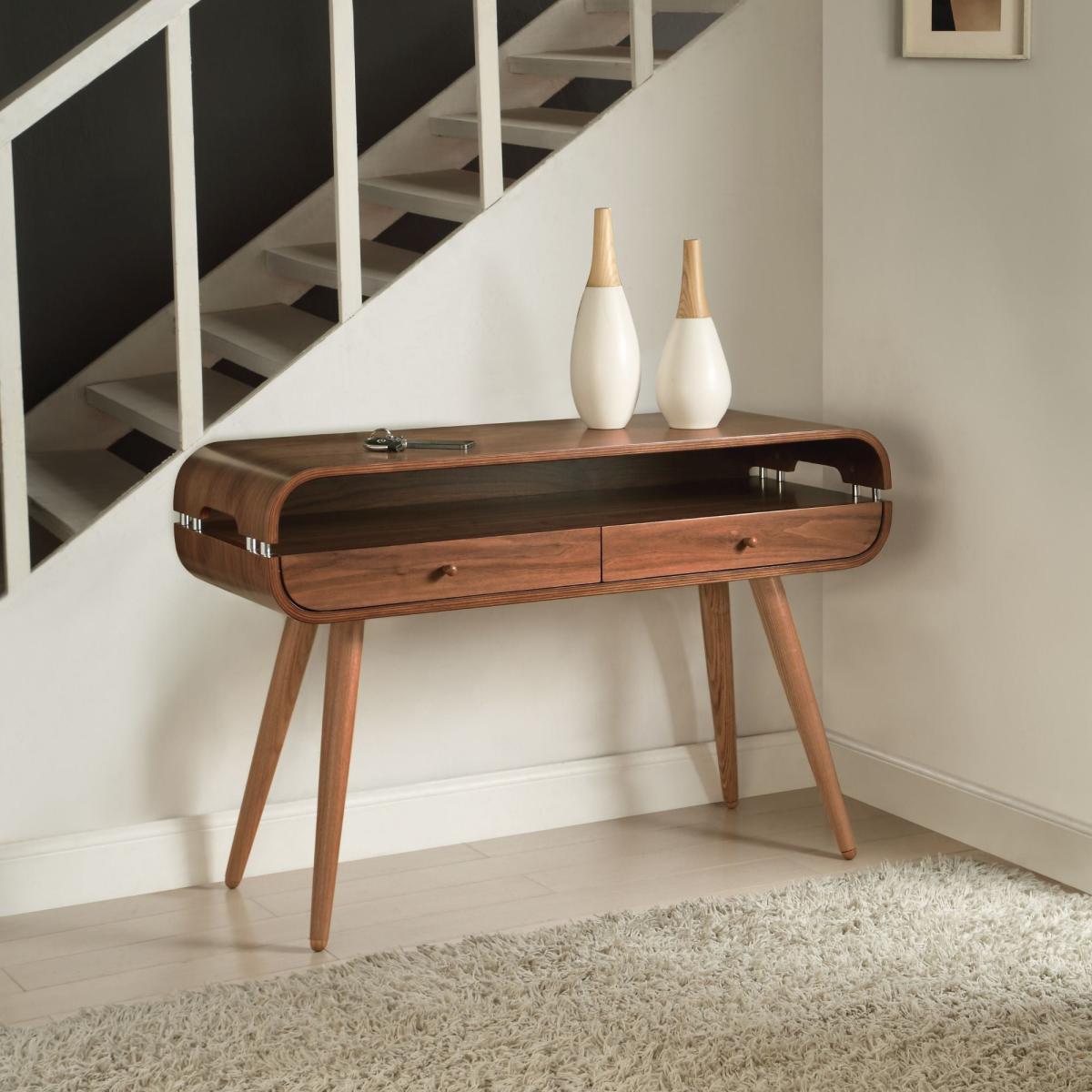 I love the warmth and sleek design of this vintage-style console, making it a versatile piece for various interiors. It works particularly well in mid-century modern, Scandinavian, or eclectic settings thanks to its walnut finish and clean lines. To style it effectively, consider keeping the top surface minimal with a few carefully chosen accessories-like a statement lamp or a tray for keys and mail-and perhaps adding some artwork or mirrors above to create visual interest. It’s practical for entryways, living rooms, or even as a stylish storage solution behind a sofa, provided you allow enough space for its streamlined profile. Overall, it’s a timeless piece that brings a touch of sophistication to any room.