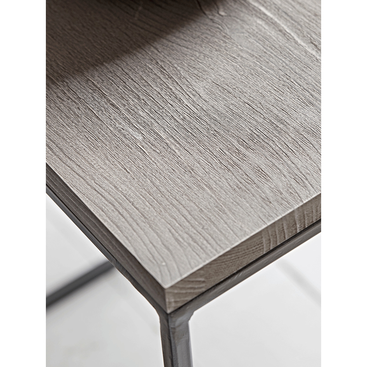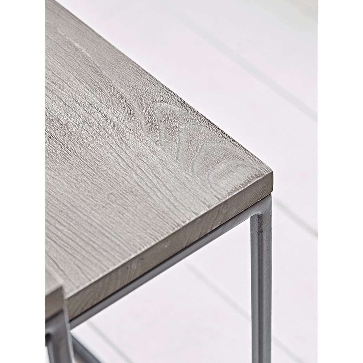 An easy update to your space, our contemporary nesting tables have an uncomplicated frame and surface. The finish of the natural wood has an appealing, authentic feel, and the dark toned frame delivers an industrial tone. Our set of two side tables are a versatile addition, nesting together to save on space, to use when needed, or position individually about the home to unify a look.