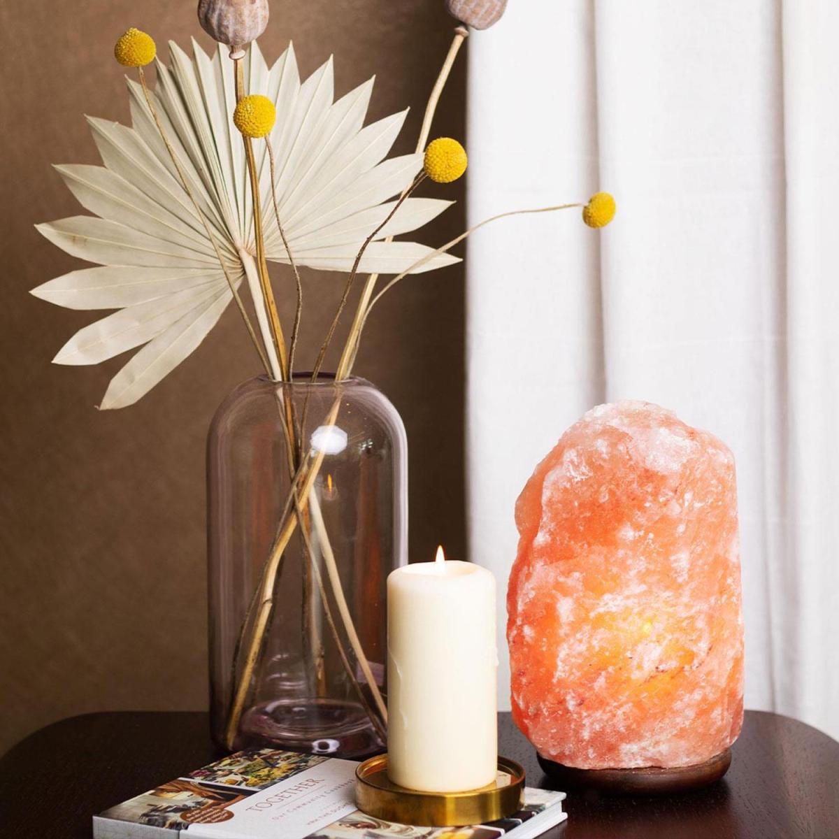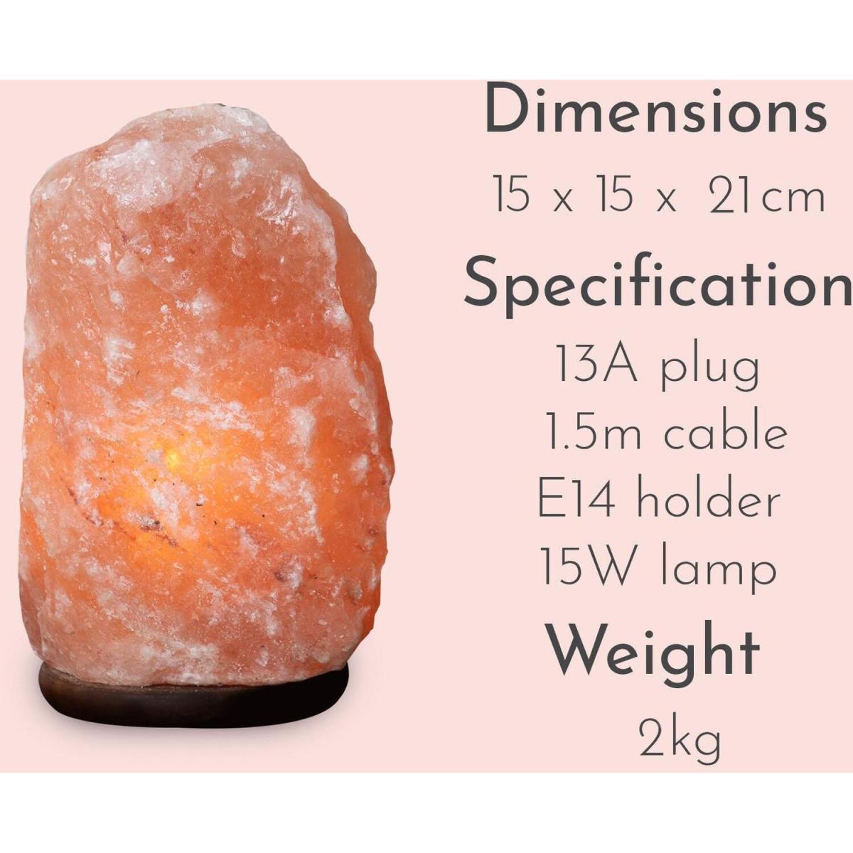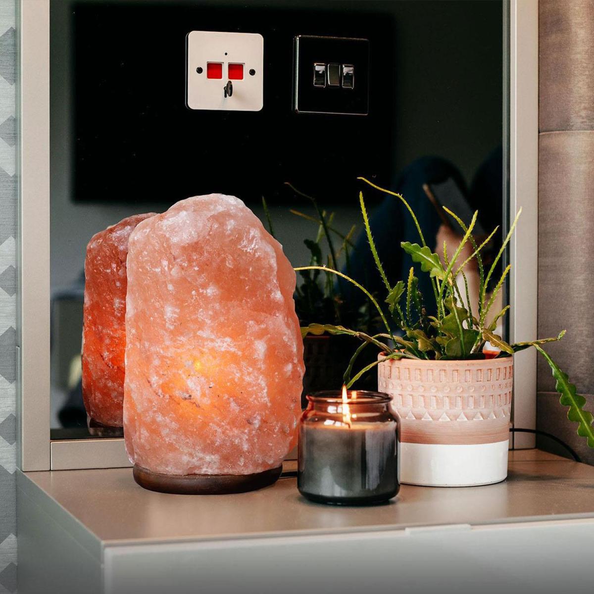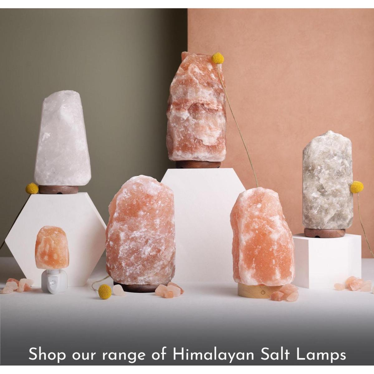 The Haven natural Himalayan salt lamp is made from 100% authentic Himalayan salt, which illuminates with a warm pink glow. This crystal table lamp and night light create a relaxing atmosphere in your bedroom, dining room, or living area. It is widely believed that Himalayan pink salt helps to improve your health and well-being by producing negatively charged ions. This purifies the air and relieves asthma, sinusitis & allergies. Why not send a pink Himalayan salt lamp as a thoughtful and therapeutic gift to relieve stress and anxiety? The table lamp comes with a high-quality wooden base, bulb, and a certified electric fitting cable.