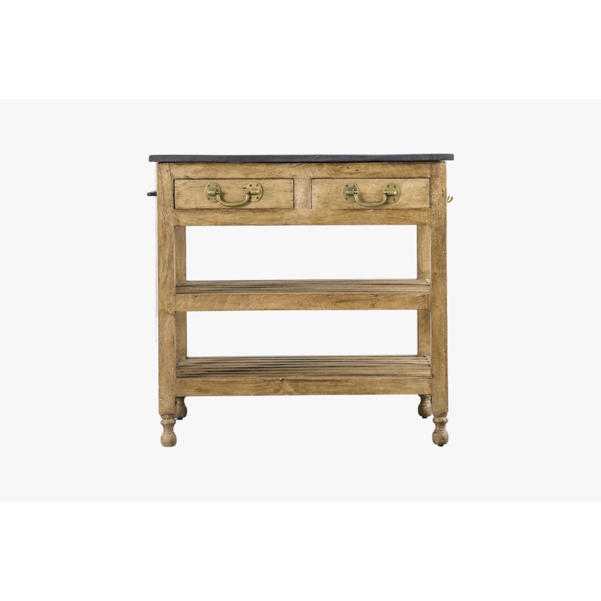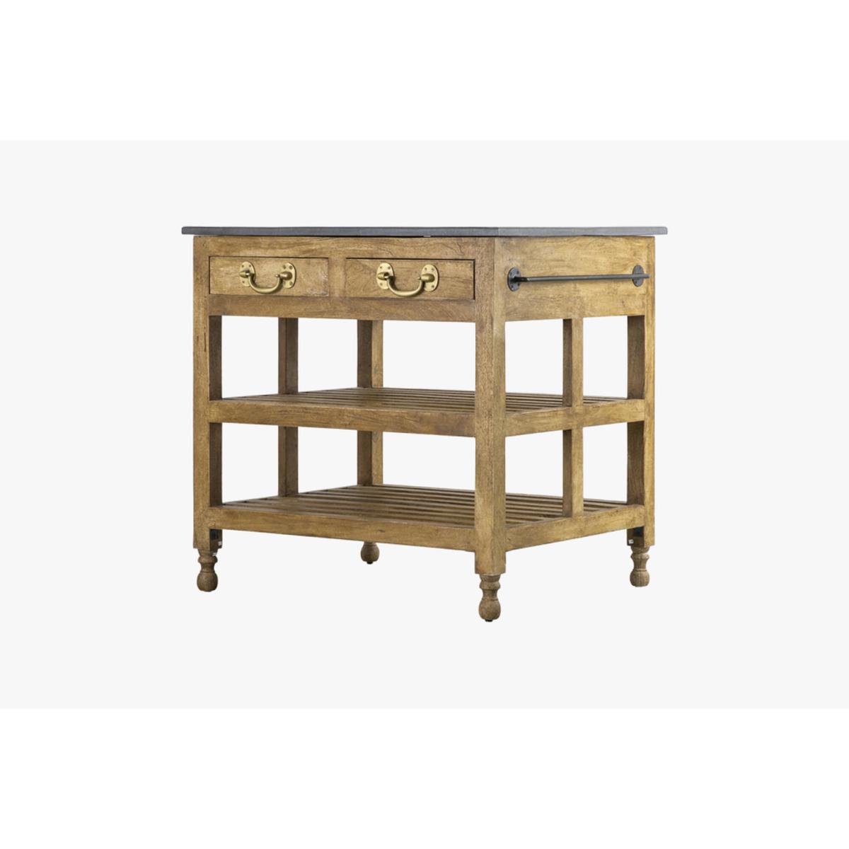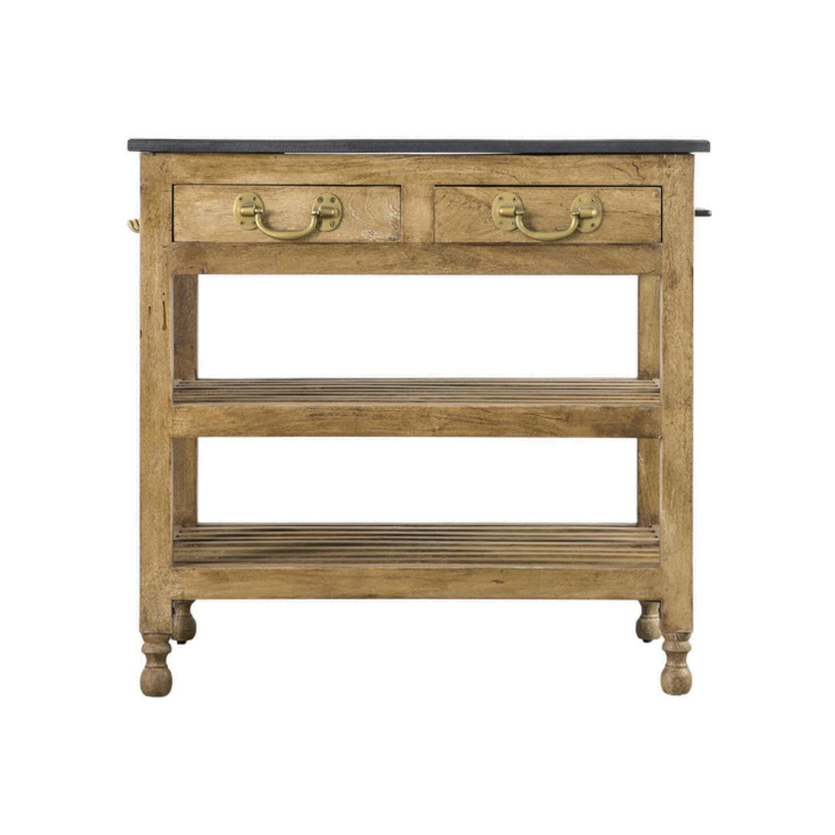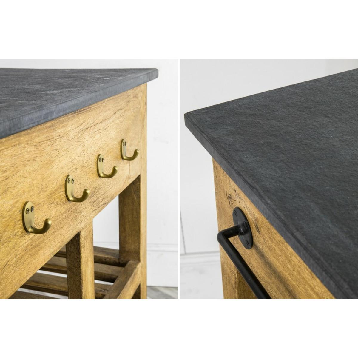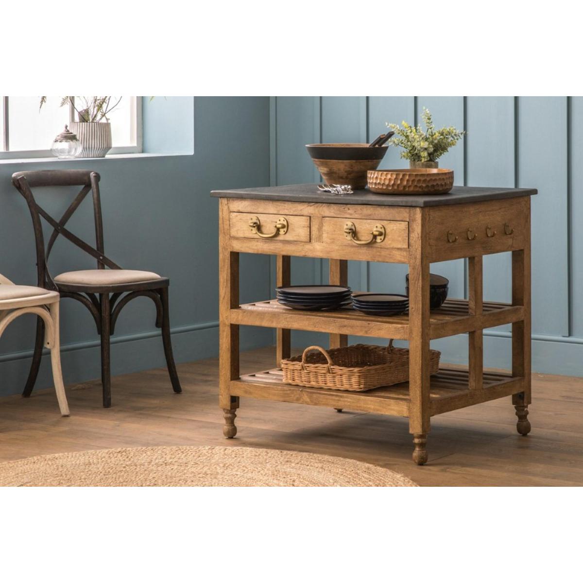 Introducing the Hawkdale Kitchen Island, where classic and rustic style meet the convenience of modern design. The Hawkdale Kitchen Island features an array of hooks to hang anything from tea towels and oven gloves to aprons, two practical pull-out drawers, and two lower shelves for easy-to-access storage and display. Endlessly versatile, the Hawkdale Kitchen Island is a solid piece for any space. Also available in a Large size allowing for seating space.