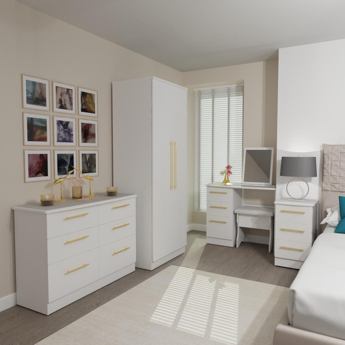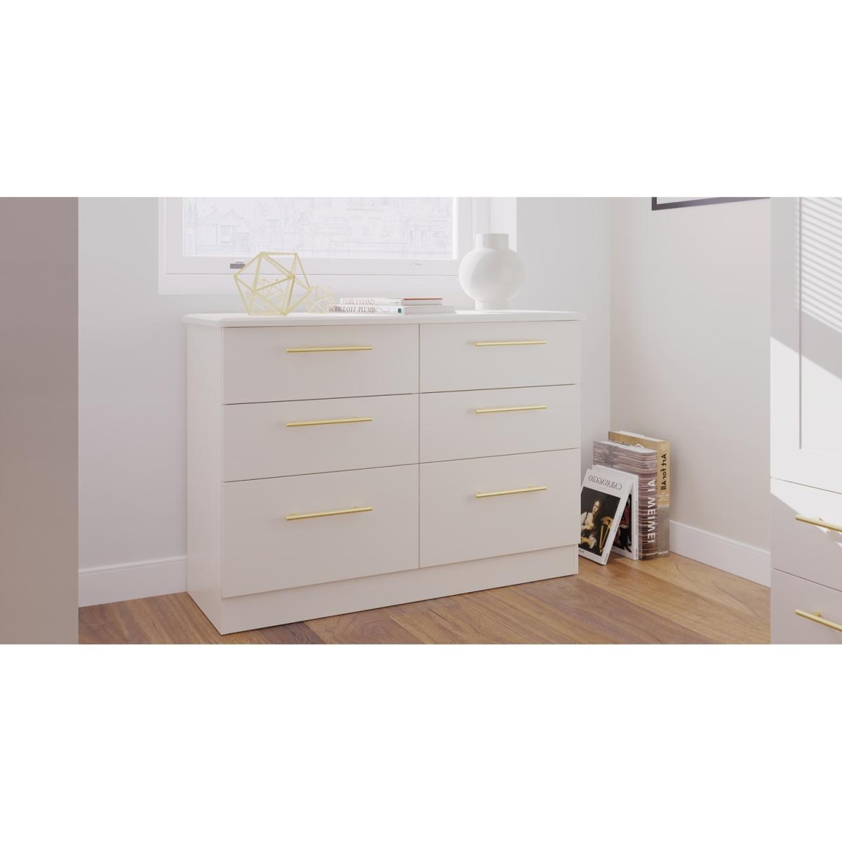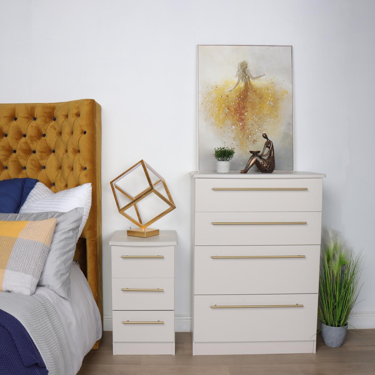 This wide 3 drawer chest of drawers is practical and stylish. Perfect for any home as a free standing storage unit. This range is modern and elegant with a smooth clean design. Features sleek gold T-Bar handles and comes ina range of scratch resistant colours. All our furniture is made in the United Kingdom, to the highest quality. It is delivered direct to your location of choice by one of our two man delivery teams, and come full assembled (although legs may be removed to prevent damage in transit).