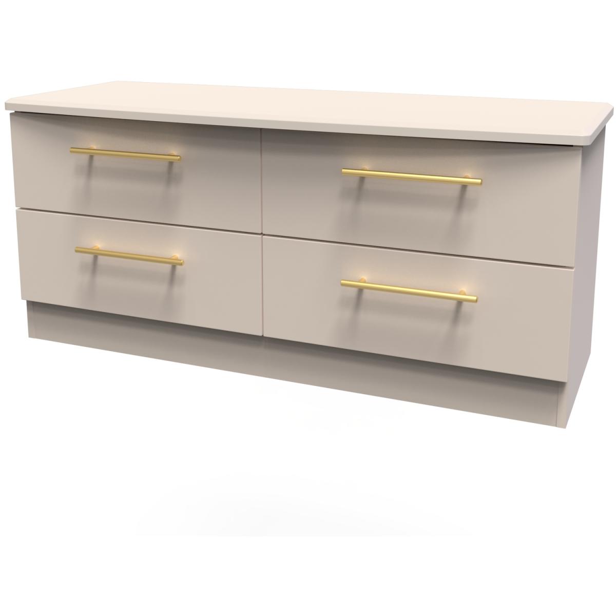 A large 4 drawer bed box. A Perfect storage solution for any room (not just the end of your bed). Could also be used as a low level TVMedia stand. This range is modern and elegant with a smooth clean design. Features sleek gold T-Bar handles and comes ina range of scratch resistant colours. All our furniture is made in the United Kingdom, to the highest quality. It is delivered direct to your location of choice by one of our two man delivery teams, and come full assembled (although legs may be removed to prevent damage in transit).