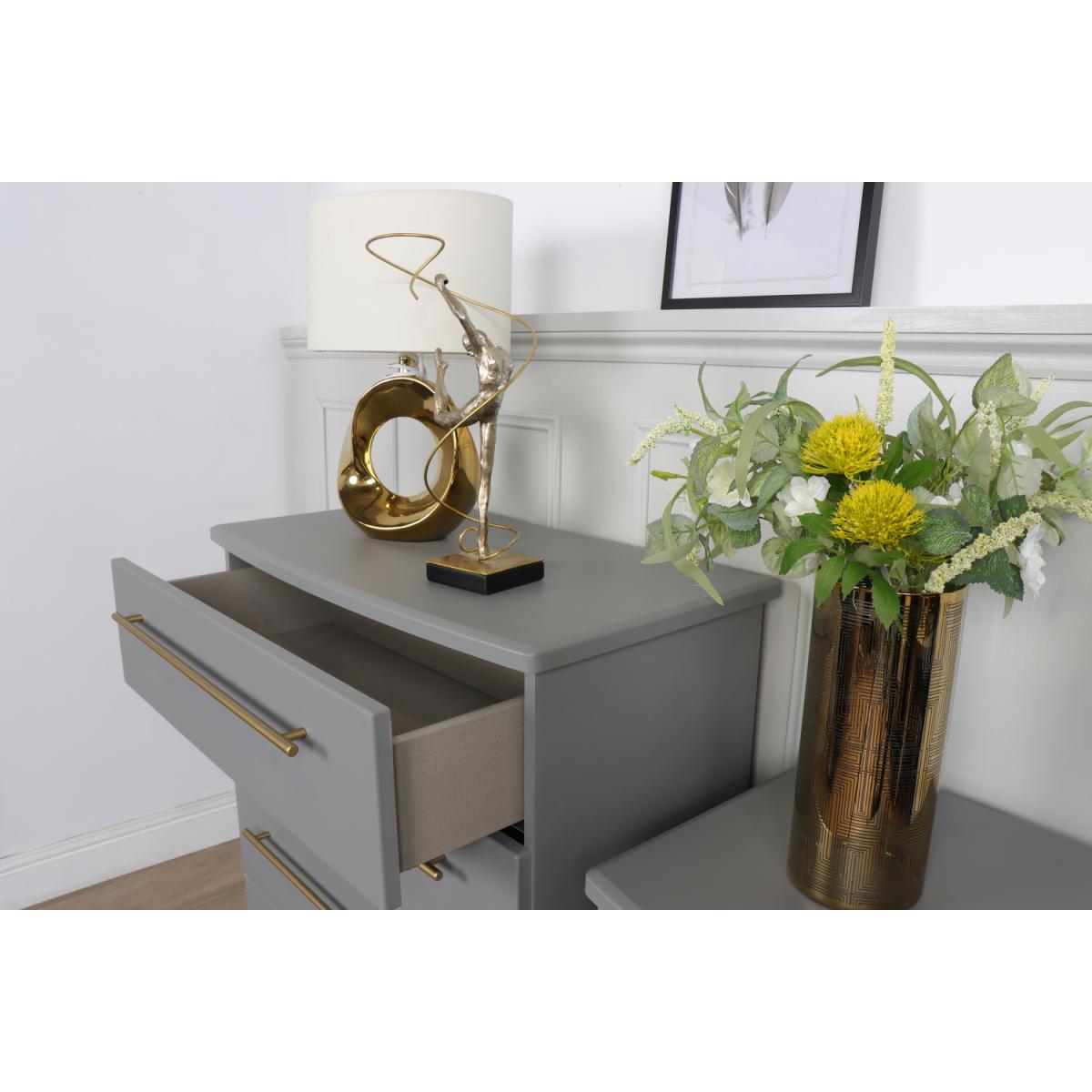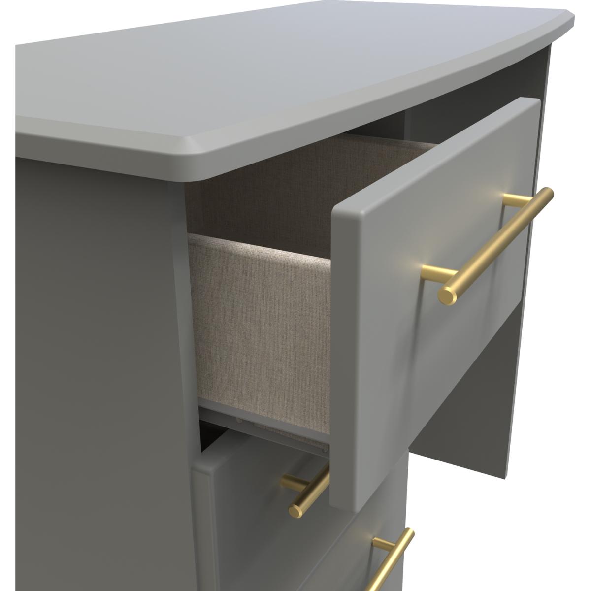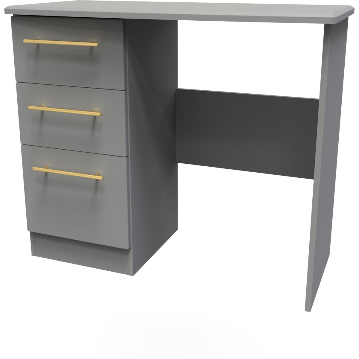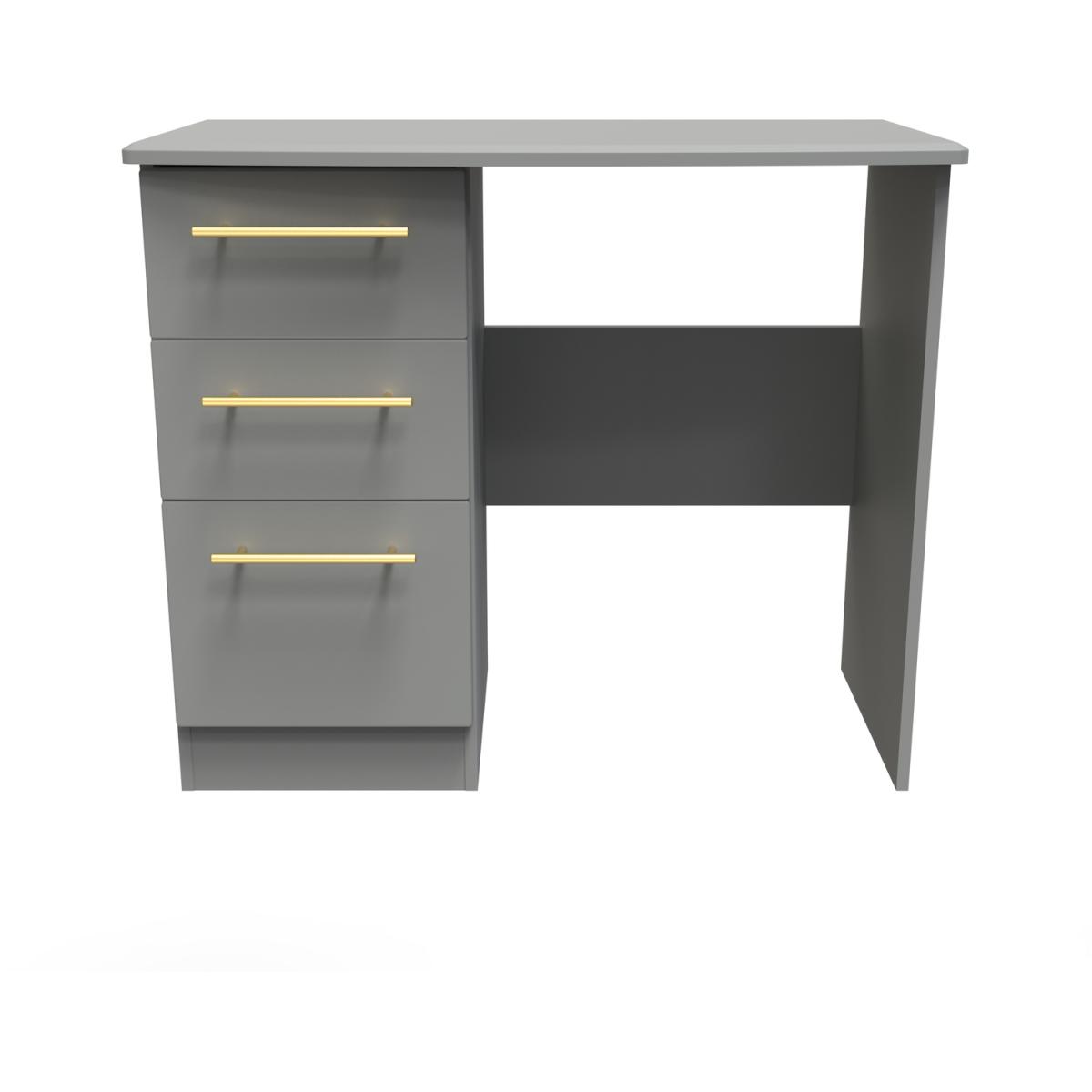 This practical 3 drawer narrow deskvanity is perfect for any bedroom or office. A matching stool and mirror (in 2 sizes) are also available. This range is modern and elegant with a smooth clean design. Features sleek gold T-Bar handles and comes ina range of scratch resistant colours. All our furniture is made in the United Kingdom, to the highest quality. All our furniture is made in the United Kingdom, to the highest quality. It is delivered direct to your location of choice by one of our two man delivery teams, and come full assembled (although legs may be removed to prevent damage in transit).