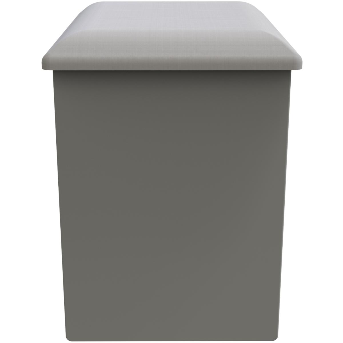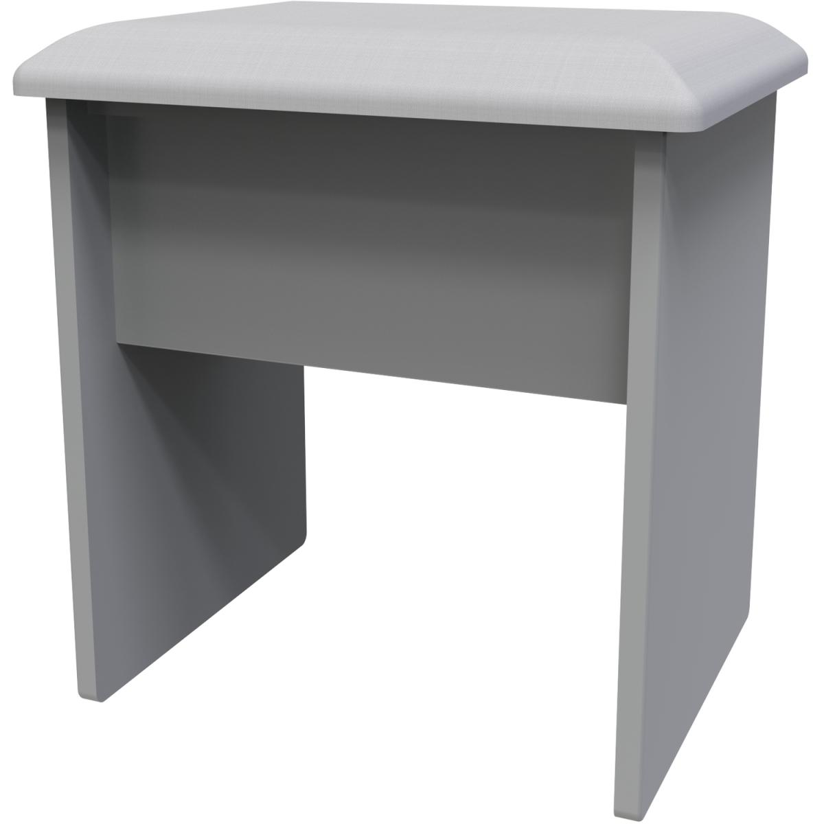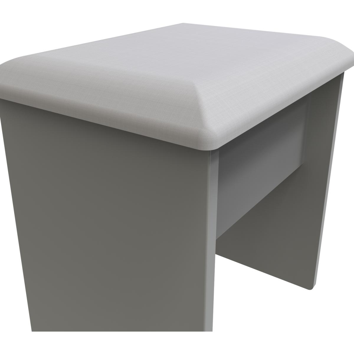 A small vanity stool. A light simple, yet sturdy design, with a soft cushioned seat. Makes an idea companion to a desk or vanity. This range is modern and elegant with a smooth clean design. Features sleek gold T-Bar handles and comes ina range of scratch resistant colours. All our furniture is made in the United Kingdom, to the highest quality. It is delivered direct to your location of choice by one of our two man delivery teams, and come full assembled (although legs may be removed to prevent damage in transit).