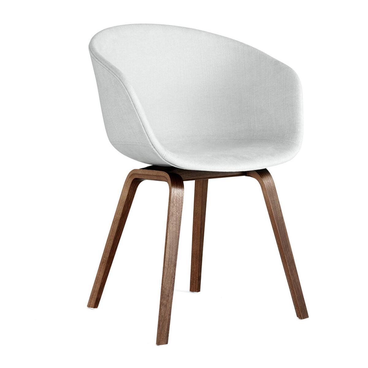 Seat guests in style with this dining chair from HAY. Sturdy polypropylene forms a comfortable seat that will complement a variety of interiors, with four walnut legs providing a sophisticated twist to its design. Ideal for bringing new life to any dining table this chair makes a wonderful addition to any new home.