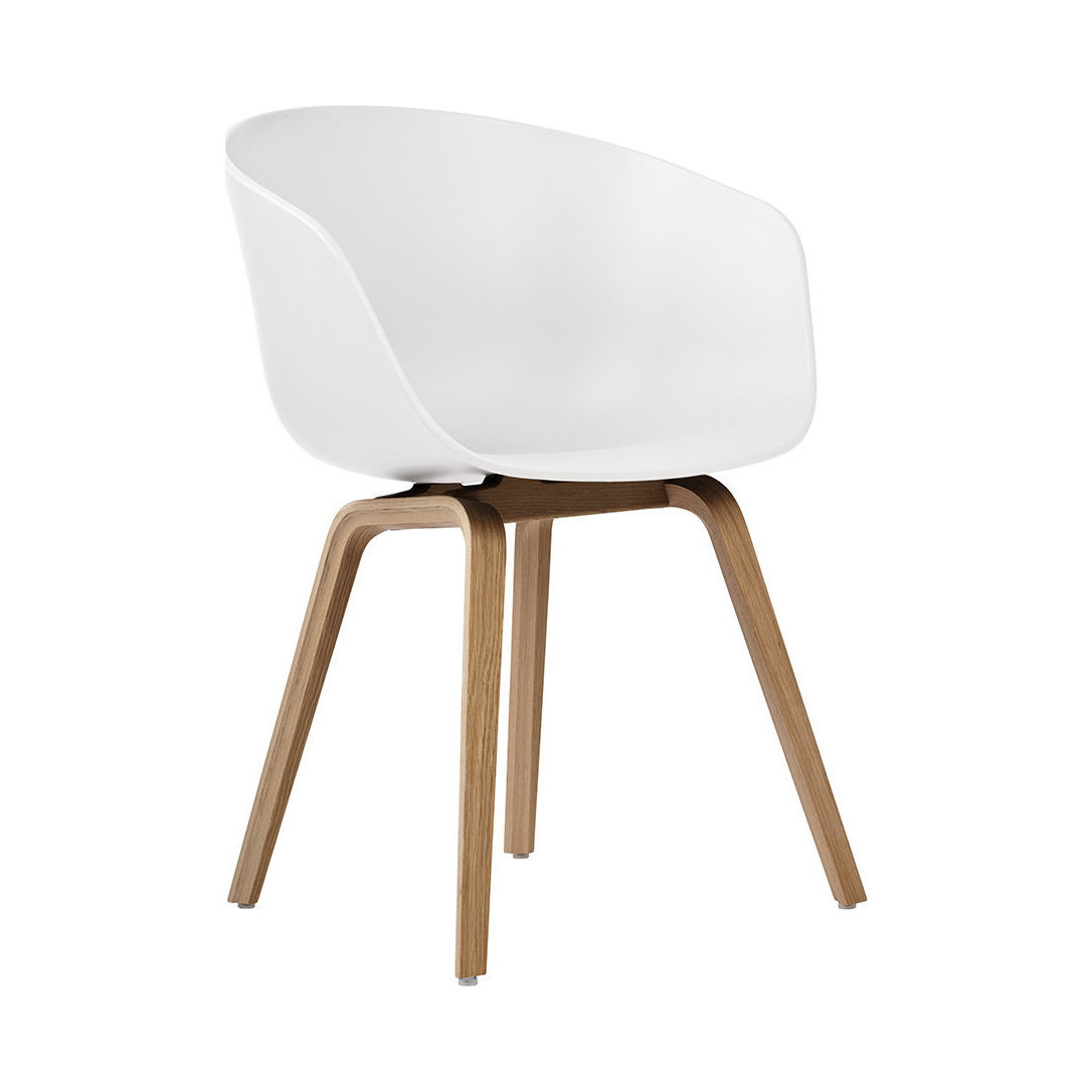 Seat guests in style with this About A Chair AAC22 chair from HAY. Sturdy polypropylene forms a comfortable seat that will complement a variety of interiors, with four lacquered oak legs providing a sophisticated twist to its design. Ideal for bringing new life to any dining table this chair is available in three colours, making it a wonderful addition to any new home. Key features: * Elegant chair * Material: polypropylene, lacquered oak * Dimensions: H79xW52xD59cm * Seat height: 46cm * Weight: 7kg * White colour * Lacquered oak legs